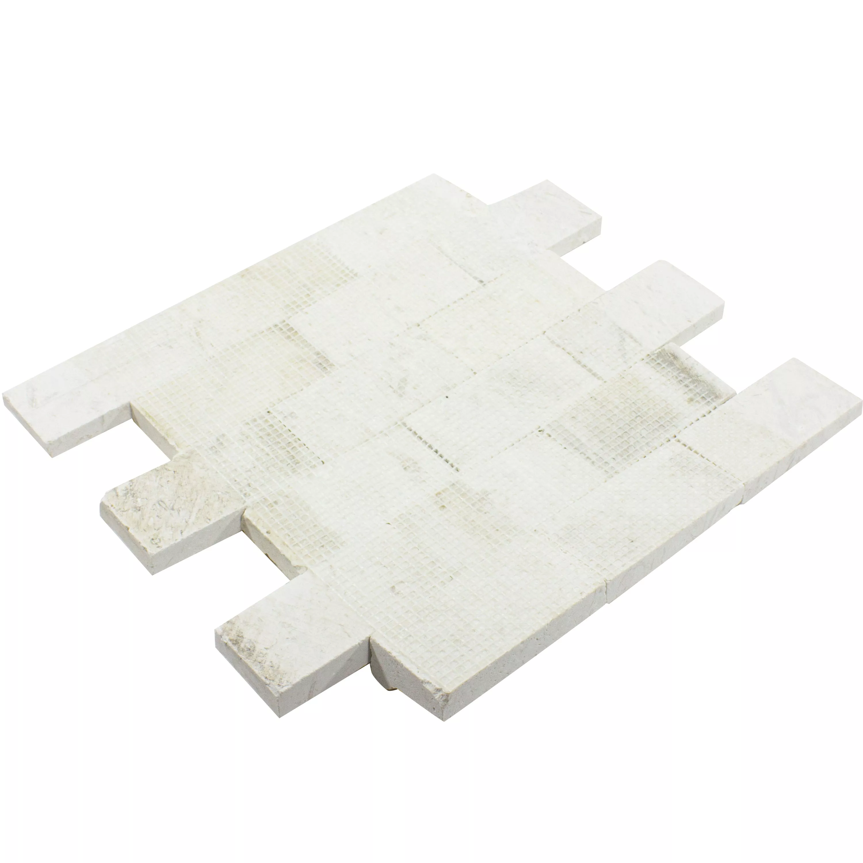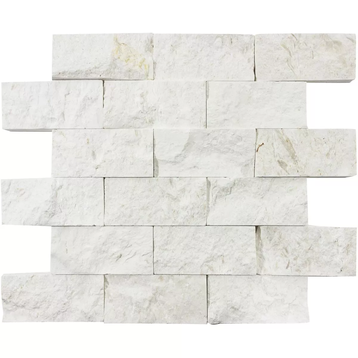 Mosaic Tiles Natural Stone Kansas Splitface 3D Blanc