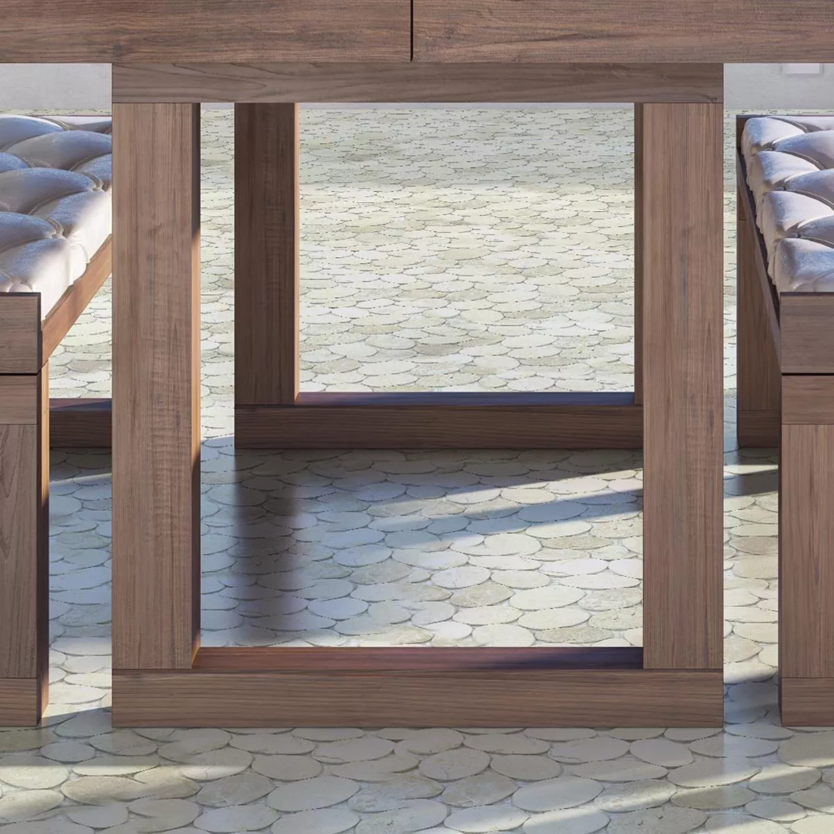 Lleve la naturaleza a su hogar con nuestro mosaico de piedra natural de guijarros de río Gardeno. Estos mosaicos, revestimientos y pavimentos con un tamaño de piedra variable de 30-80 mm le dan a su baño, salón y cocina una estética orgánica. La superficie cortada y mate resalta la estructura natural de la piedra natural. Con un grosor de 10 mm, no sólo ofrecen un encanto rústico, sino también una calidad robusta.