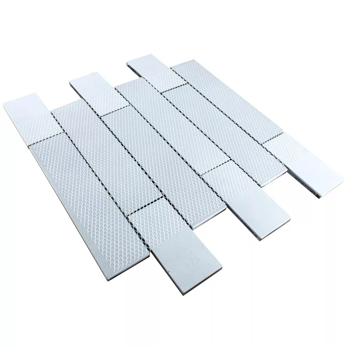 Las piedras de mosaico individuales tienen los tamaños 48 x 98 mm y 48 x 198 mm y están dispuestas sobre esteras de 30 x 30 cm. Cada tapete cubre un área de 0,090 m² y tiene 8 mm de espesor, lo que garantiza una superficie robusta y duradera. La forma rectangular de las piedras permite un patrón elegante y geométricamente atractivo.