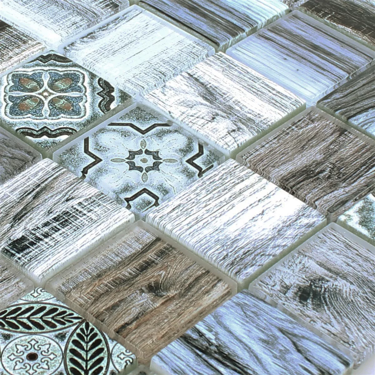 ¡Parece madera, pero en realidad es vidrio! Hablamos del mosaico de vidrio Makarska. Es un azulejo de pared hecho de vidrio, que tiene un hermoso aspecto de madera. El azulejo de mosaico azul tiene un patrón diverso, por lo que el ojo siempre ve algo nuevo.