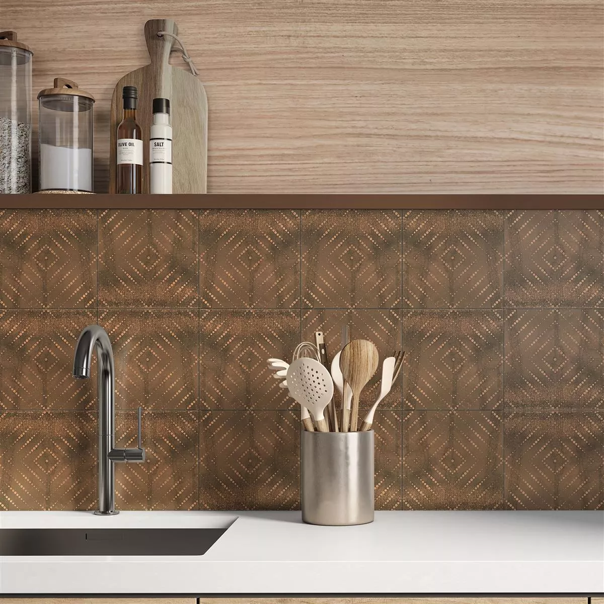 El pavimento Chicago aspecto metálico Bronce R9, con unas medidas de 18,5x18,5 cm y un espesor de 8 mm, se presenta en un moderno color cobre. Fabricados con gres porcelánico de alta calidad, estos azulejos son adecuados tanto para revestimiento de pared como para suelo, dando a su habitación un aspecto vintage único.