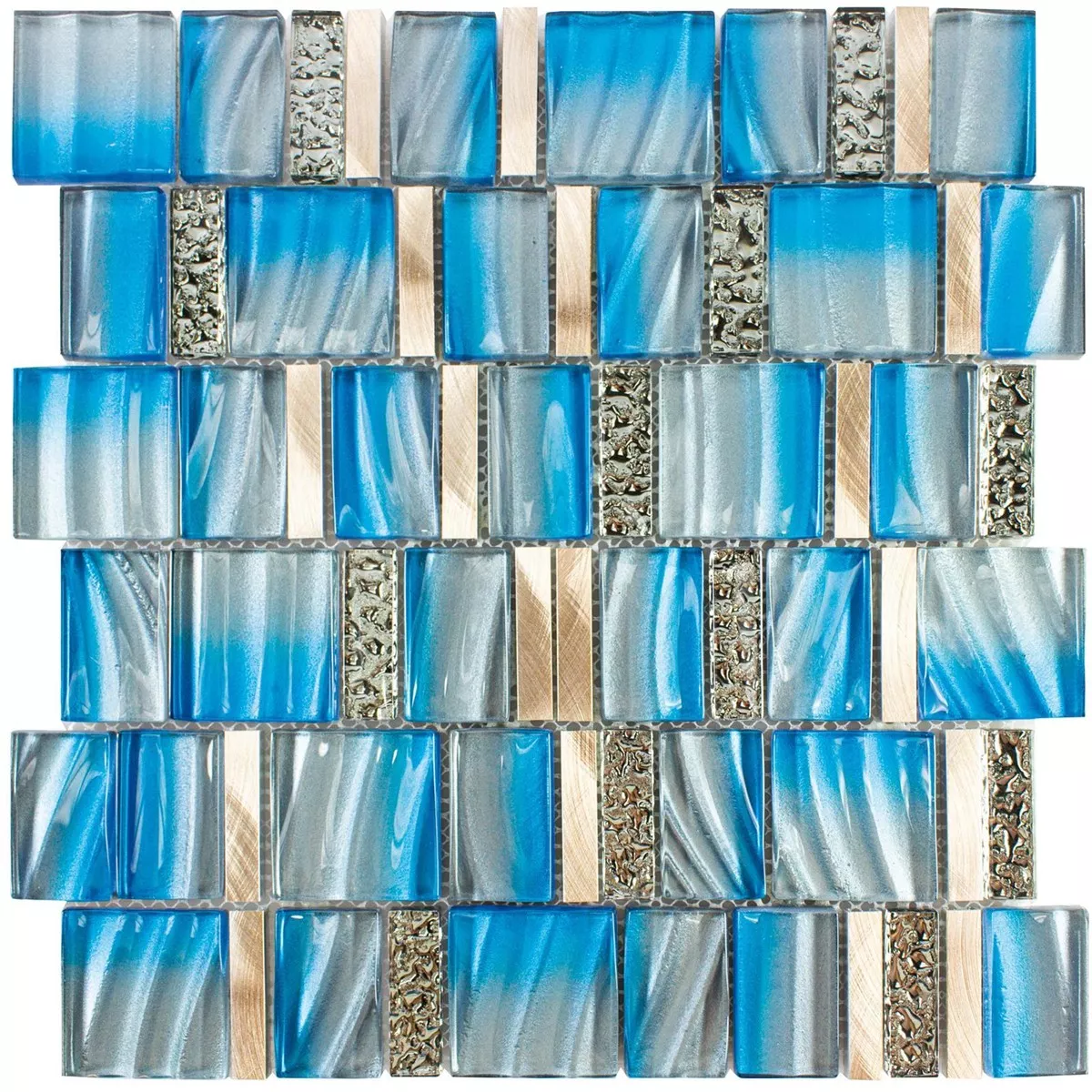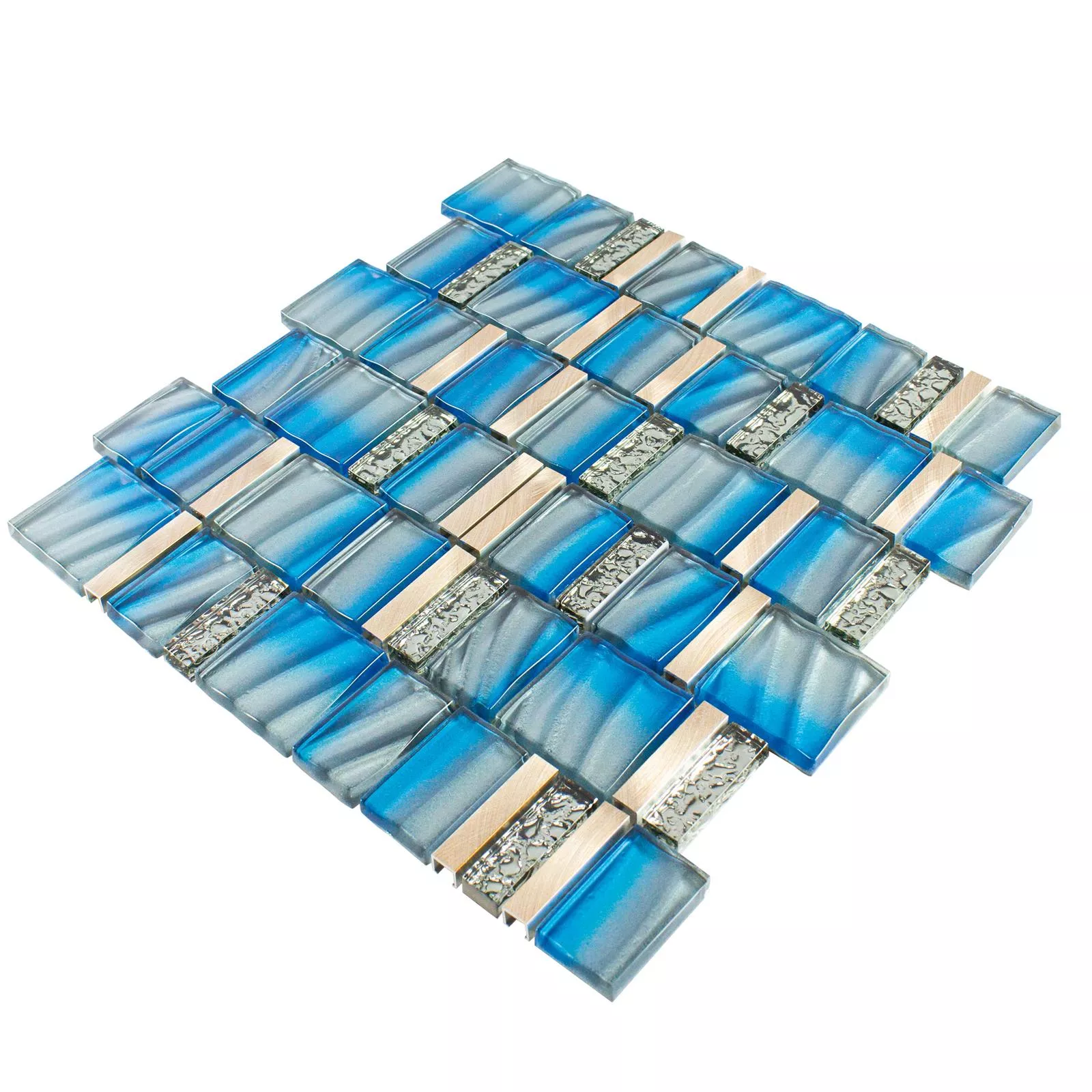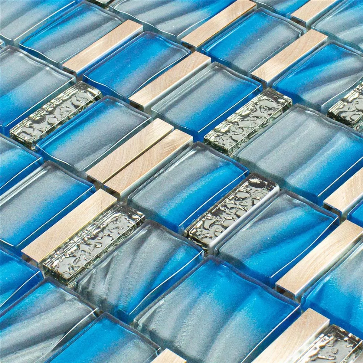 Unionin lasi-metallimosaiikkilaatat sinisenä ja kuparisena lisäävät värikkäitä aksentteja jokaiseen huoneeseen ja yhdistävät elegantin muotoilun toiminnalliseen monipuolisuuteen. Nämä mosaiikkilaatat on valmistettu harmonisesta alumiinin ja lasin yhdistelmästä, mikä antaa pinnoille ylellisen ja modernin ilmeen.