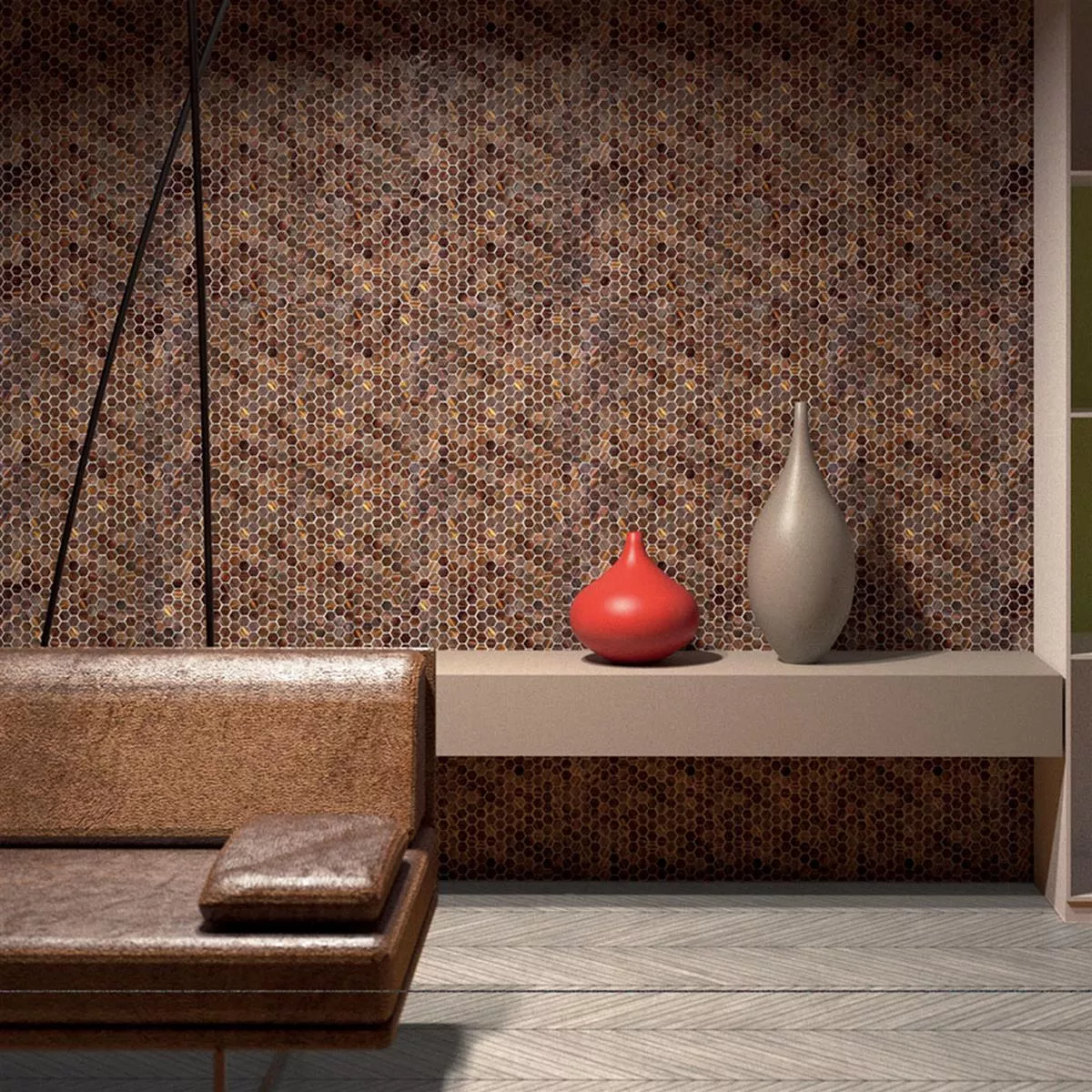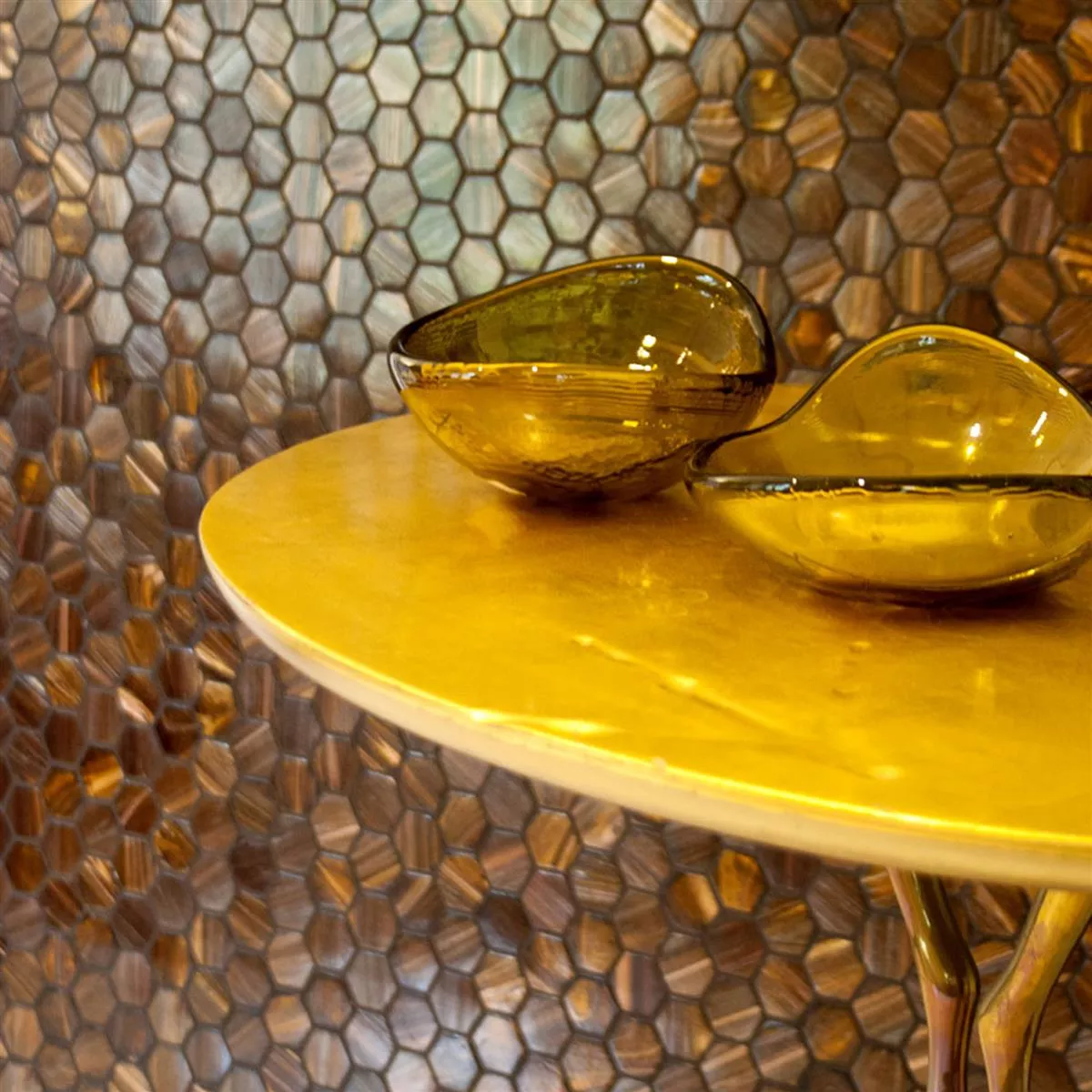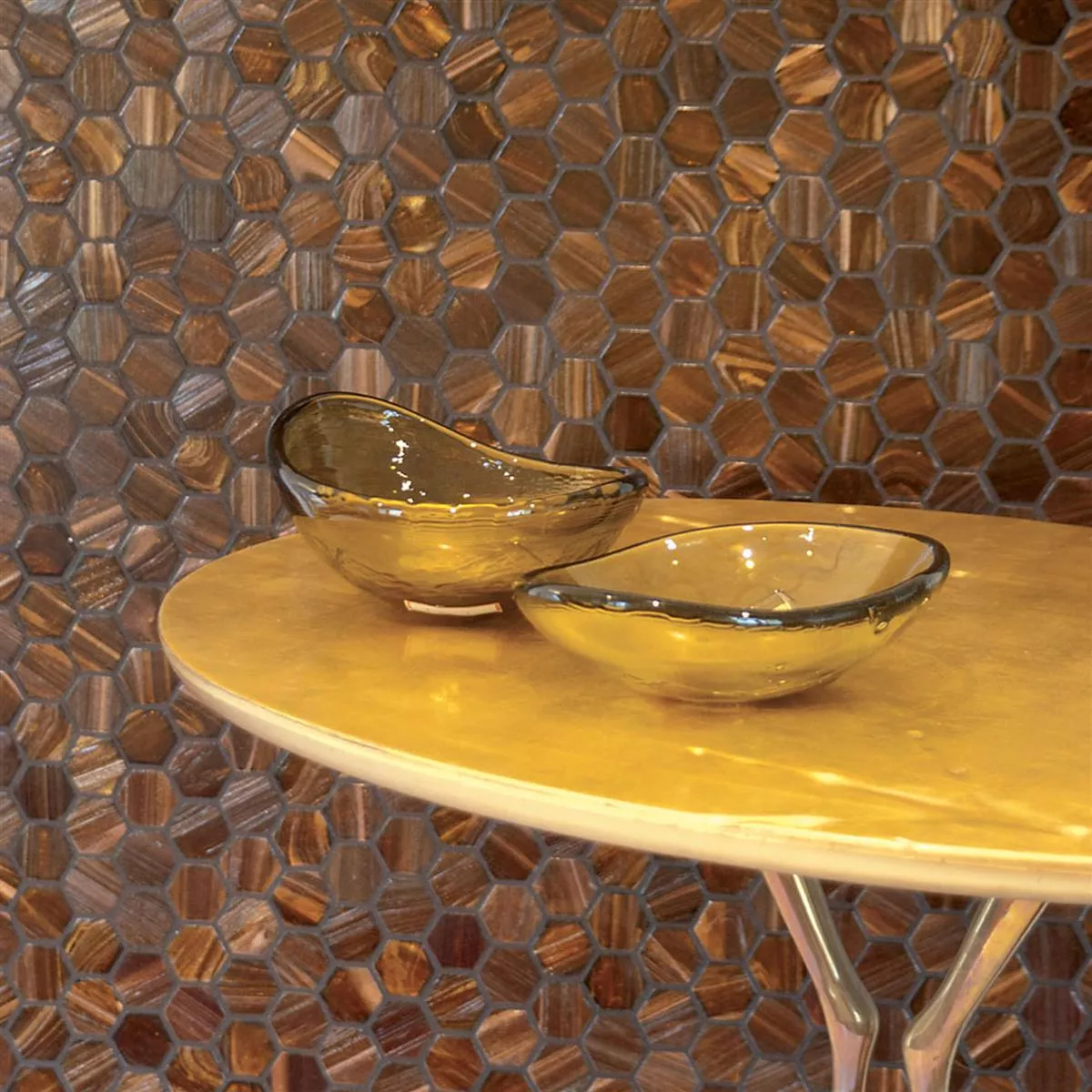 Lasimosaiikki Laatat Trend-Vi Hexagonal 270 Tumman Ruskea