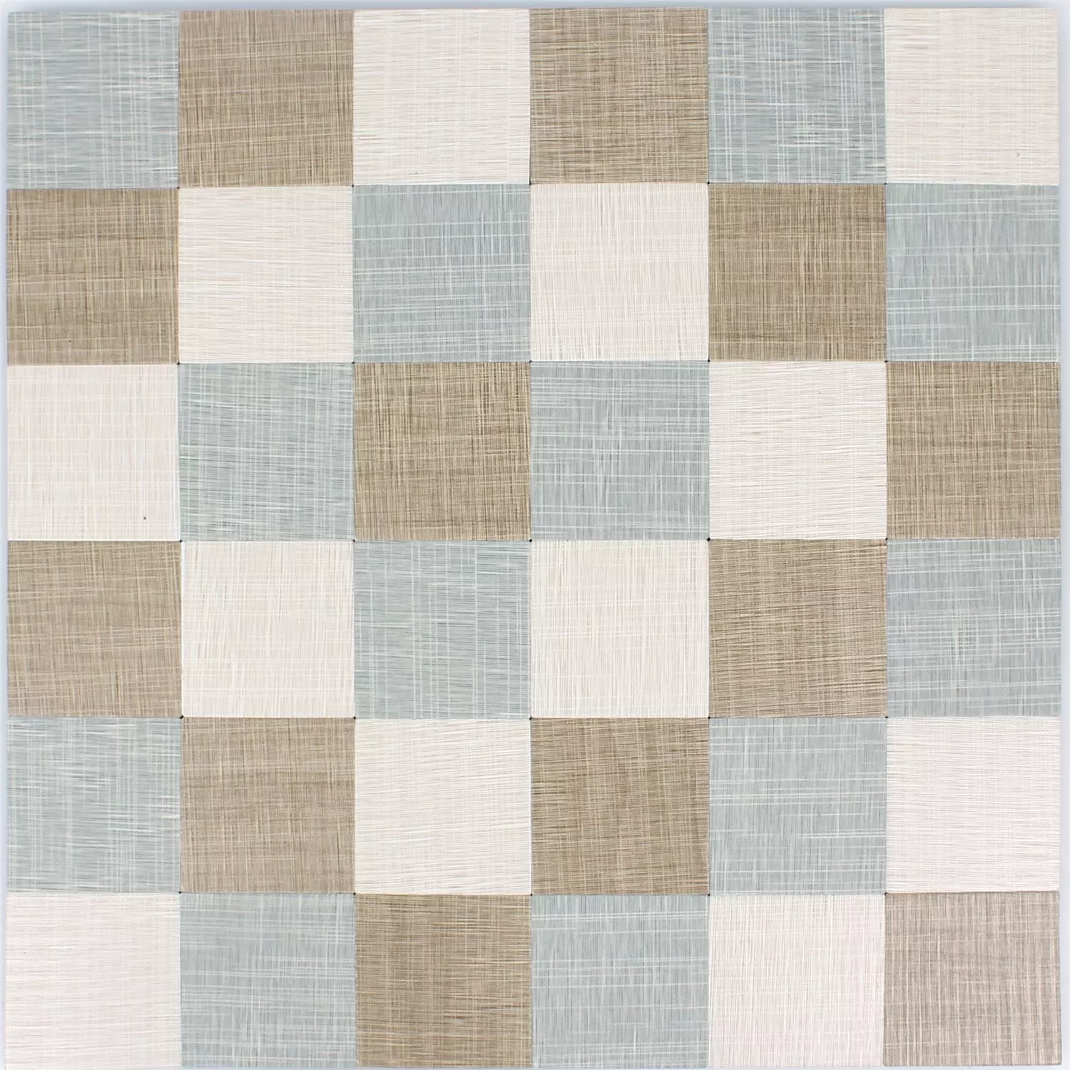 Nämä itseliimautuvat mosaiikkilaatat harmonisoituvat vaaleanruskean, harmaan ja beigen sävyinä. Väriyhdistelmä ja pintakuvio tekstiilirakenteella välittävät kodikasta ja lämmintä tunnelmaa. Näiden mosaiikkilaattojen tyyliä voidaan kuvata retroksi tai vintageksi. Voit valita neliökuvion tai neliöiden ja suorakulmioiden yhdistelmäkuvion välillä. Väriyhdistelmä pysyy samana molemmissa valintavaihtoehdoissa. Kirkas, lähes pastellivärinen yhdistelmä saa kuvion näyttämään trendikkäältä ja modernilta. Itseliimautuvat seinälaatat on erityisen helppo kiinnittää. Sisätiloihin, kuten makuuhuoneisiin, pukuhuoneisiin, olohuoneisiin tai käytäviin, voidaan helposti ja nopeasti saada uusi ilme seinäpäällysteiden avulla. Mosaiikkilaatat eivät kuitenkaan sovellu kosteisiin tiloihin tekstiilirakenteen vuoksi. Seinälaattojen tekstiilin ulkonäkö ei viittaa siihen, että nämä seinälaatat olisi valmistettu kestävästä metallista. Koska ne ovat vain muutaman cm paksuja, ne sopivat hyvin myös pieniin tai hyvin kapeisiin huoneisiin.