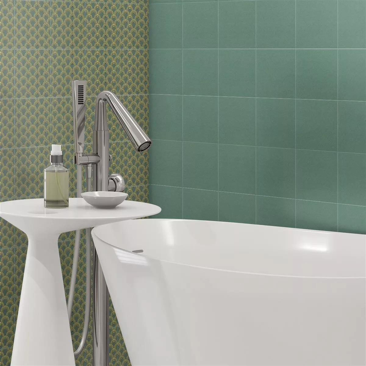 Redesign your home with these green square tiles and bring a natural freshness to your rooms with the floral look. Create an environment that impresses not only with style, but also with a touch of closeness to nature.