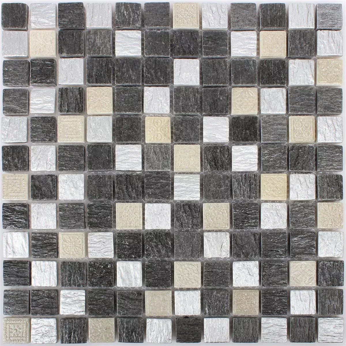 Glass Mosaic Natural Stone Tiles Colicos Grey Black Silver