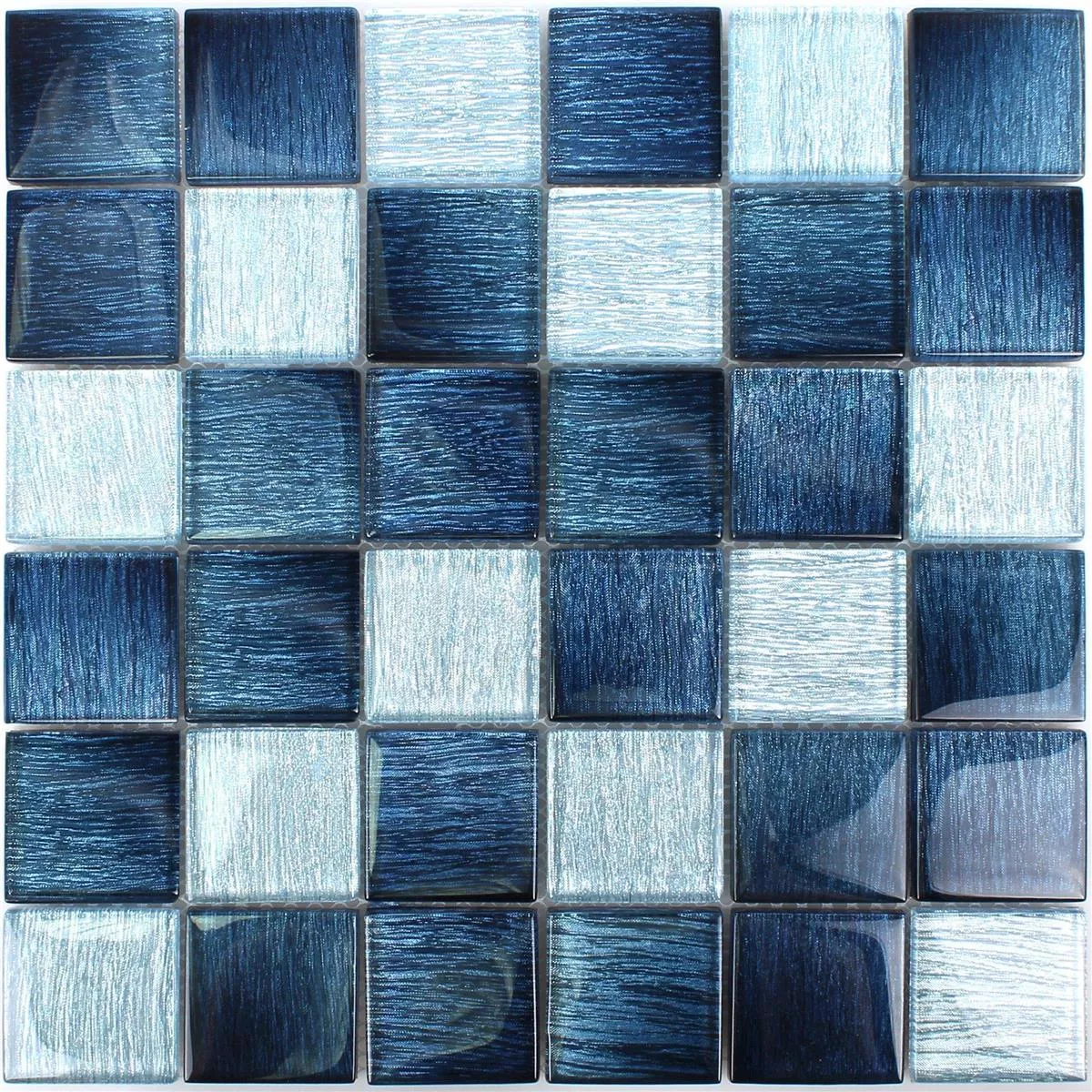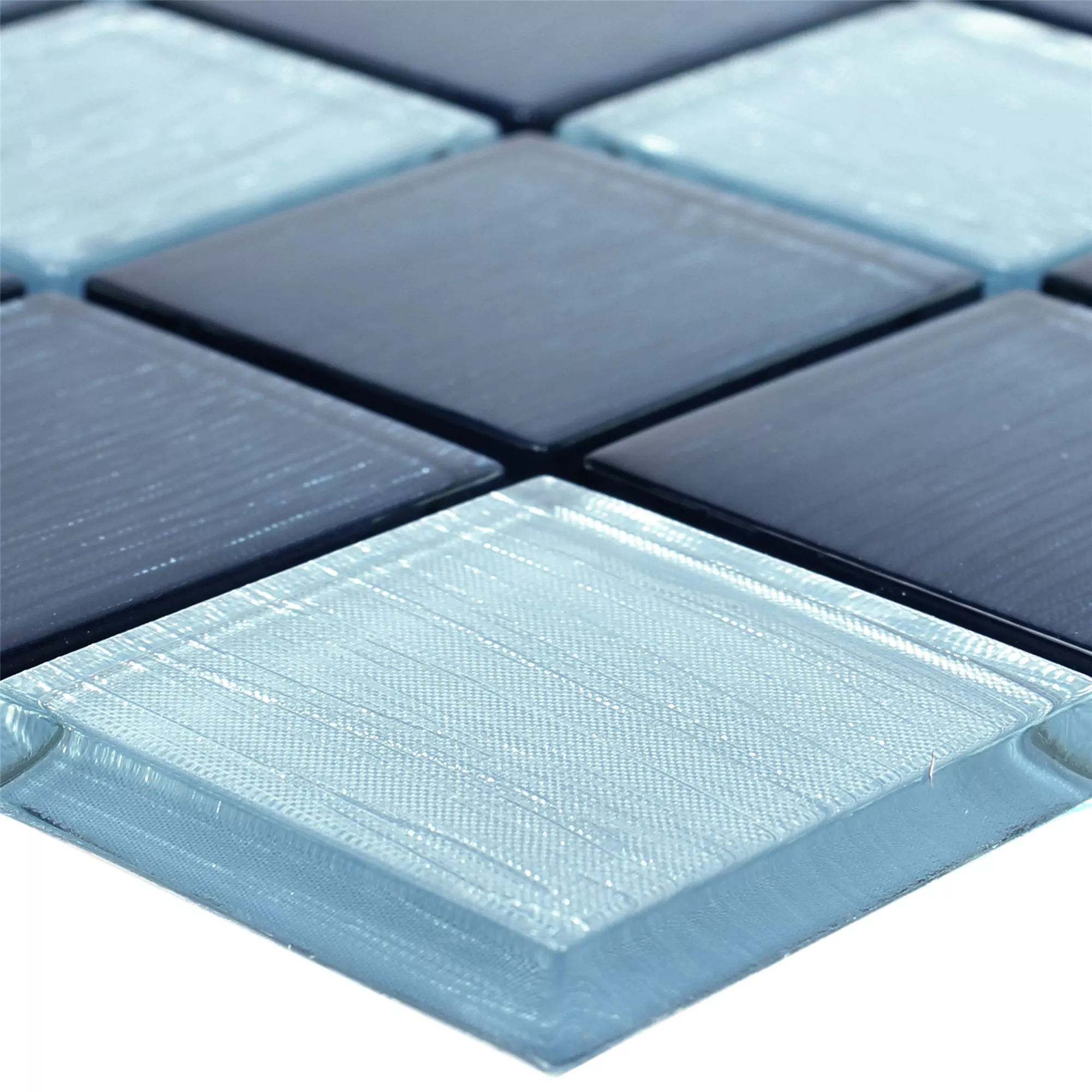The respective stone size of the glass mosaic is 48x48 mm. In addition, the mat dimensions are 29.8x29.8 cm. The thickness of the Bellevue mosaic tiles, which is 8 mm, must also be taken into account. One of the advantages of the striped Bellevue tiles is the material used. Since the tiles are made of glass, they are both practical and beautiful. The glass surface can be easily wiped off, for example, and the material used also supports the shiny and reflective look of the mosaic tiles.