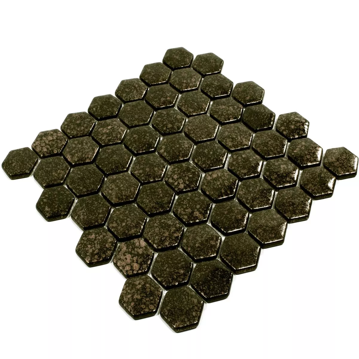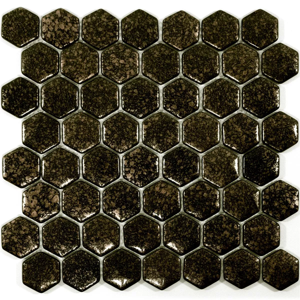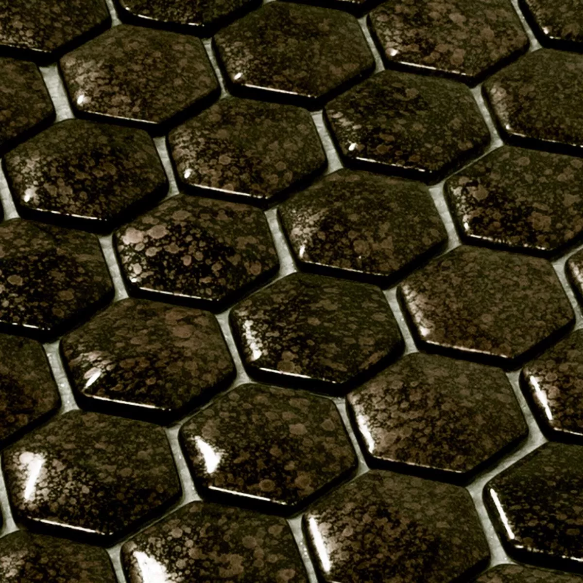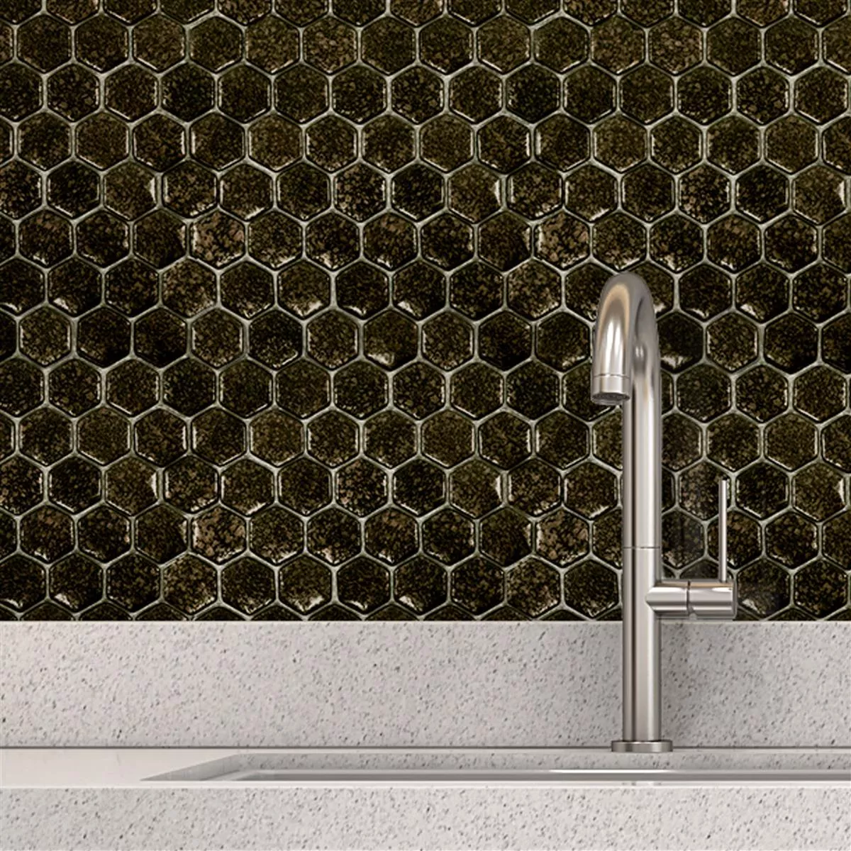 The Leopard mosaic tiles are available in a modern hexagon format of 29 x 29 cm. Each tile has a stone size of 40 x 40 mm and a thickness of 7.5 mm, creating a striking yet attractive look. The glossy surface reflects light and enhances the luxurious gold tone that stands out in any room.