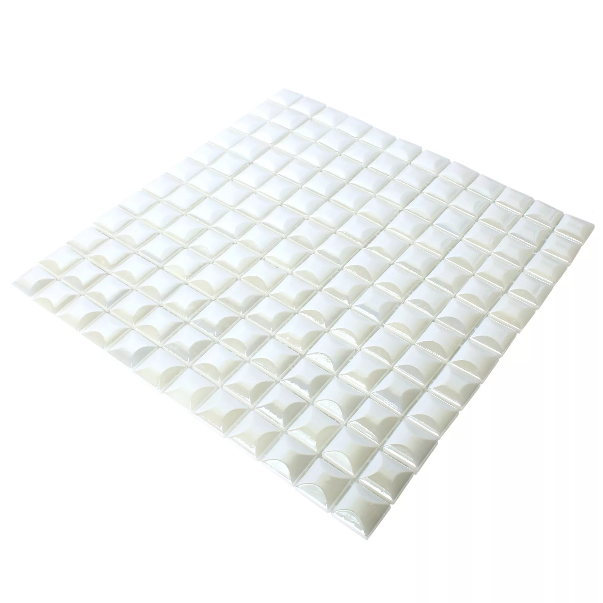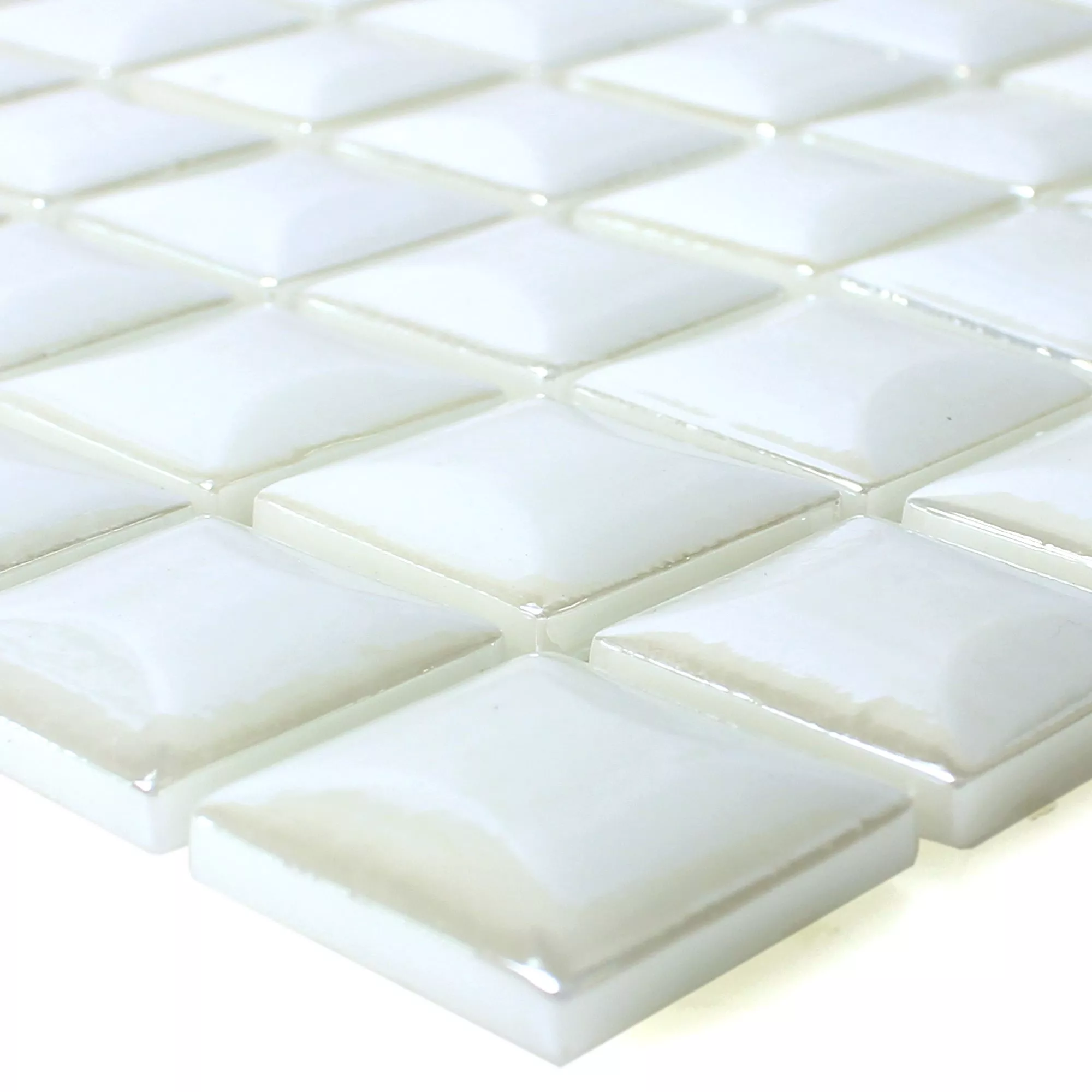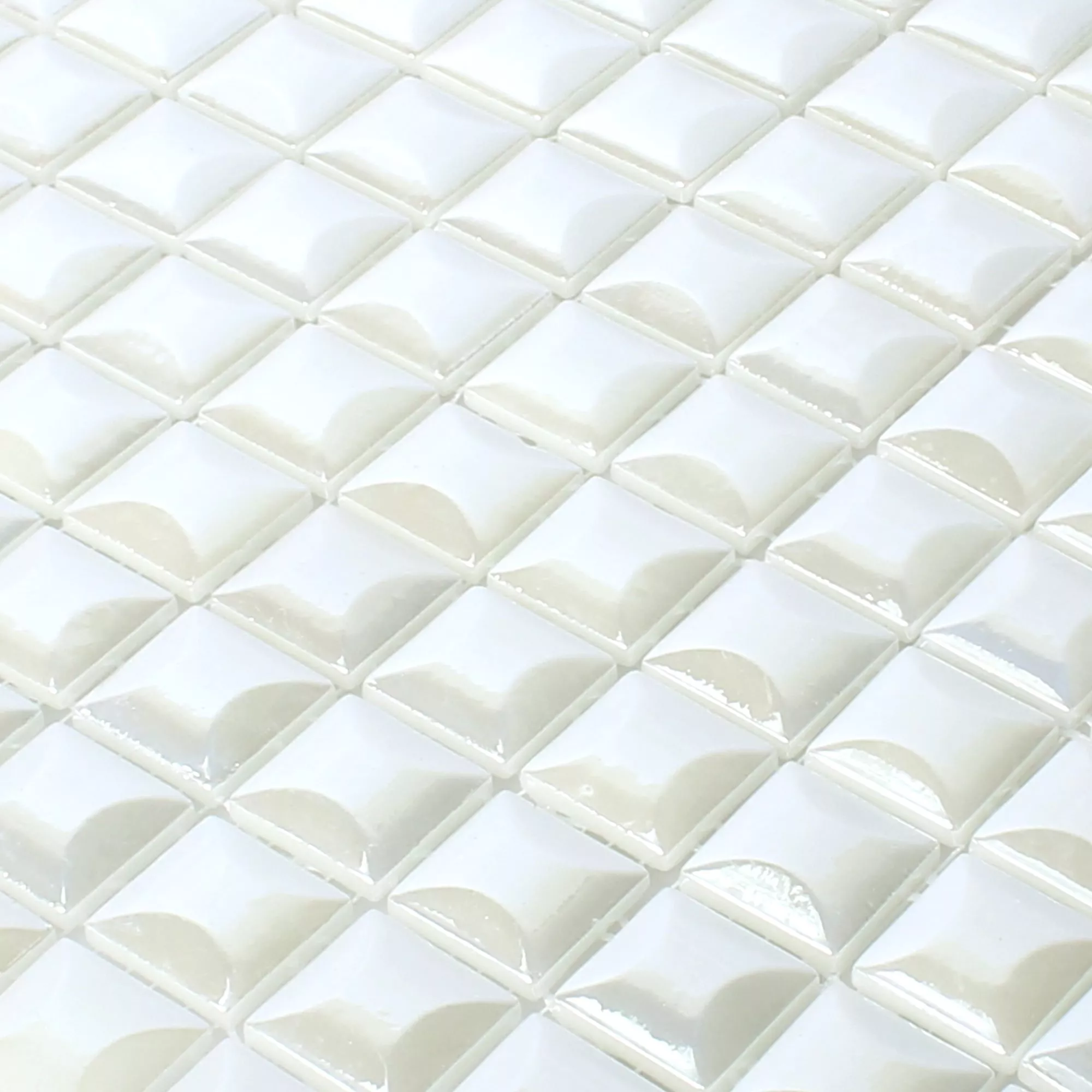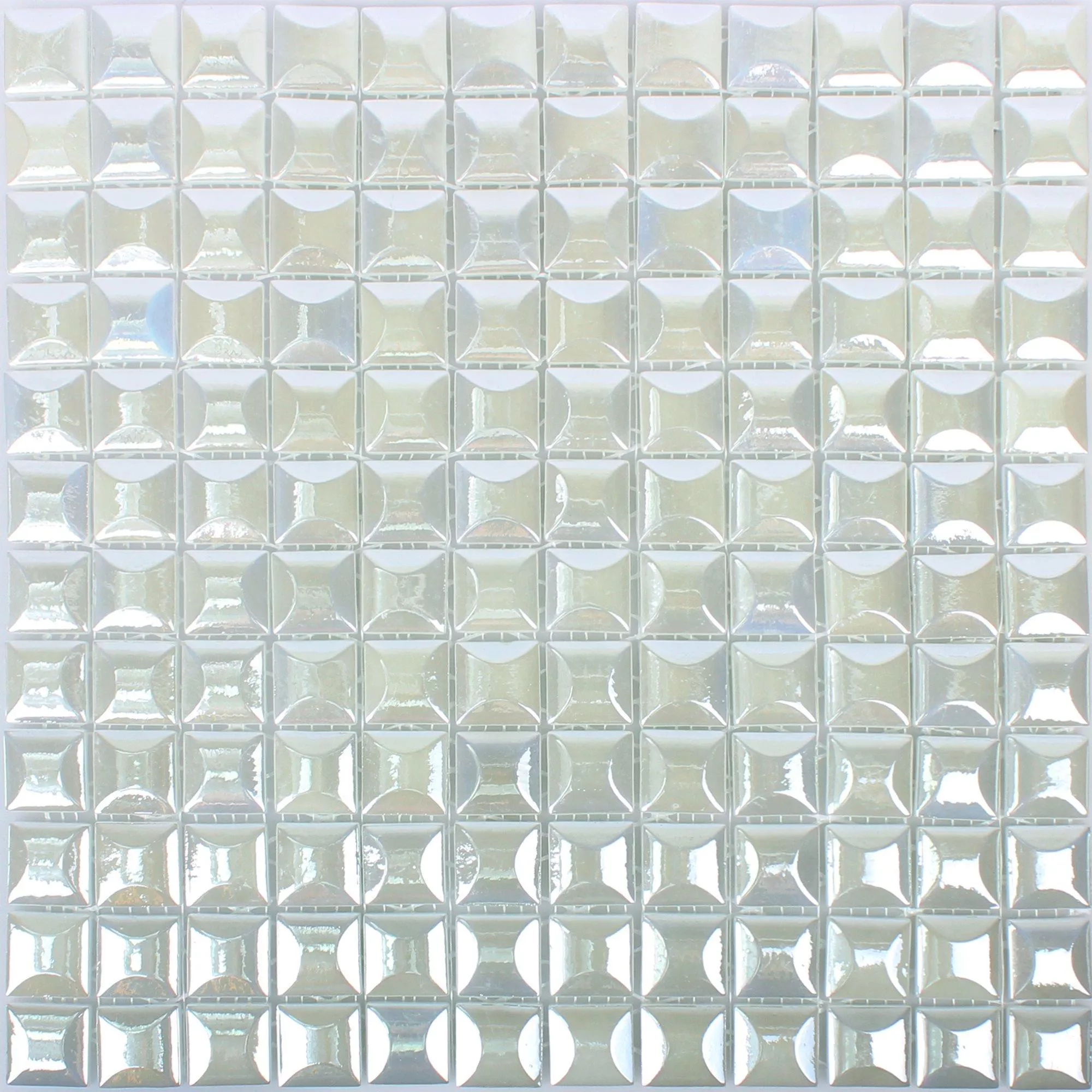 Glass Mosaic Tiles Monrovia White 3D Metallic