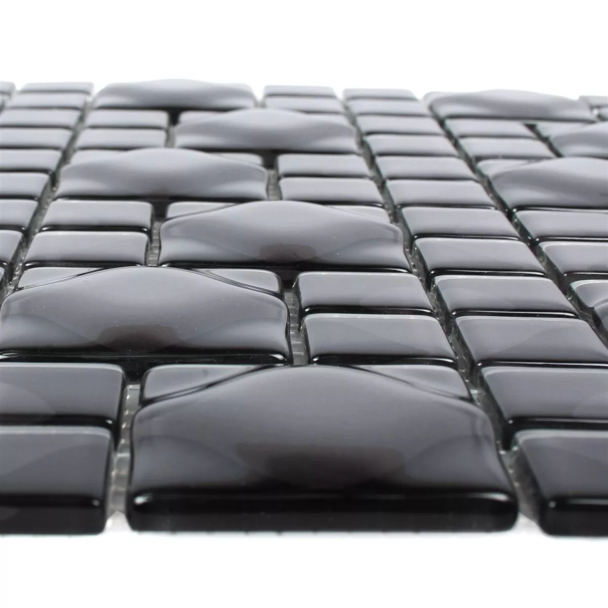 Today, the trend is increasingly towards large-scale tiles. Glass mosaic tiles also offer their own design and application options. Glass mosaic tiles do not have to be laid over a large area. They often only want to serve as an eye-catcher or set skilful accents. There are no limits to the imagination here. With the Nokta Black Gray 3D glass mosaic tile, you can create playful contrasts and splashes of color on more neutral surfaces. The tile can also be used to specifically emphasize certain elements.