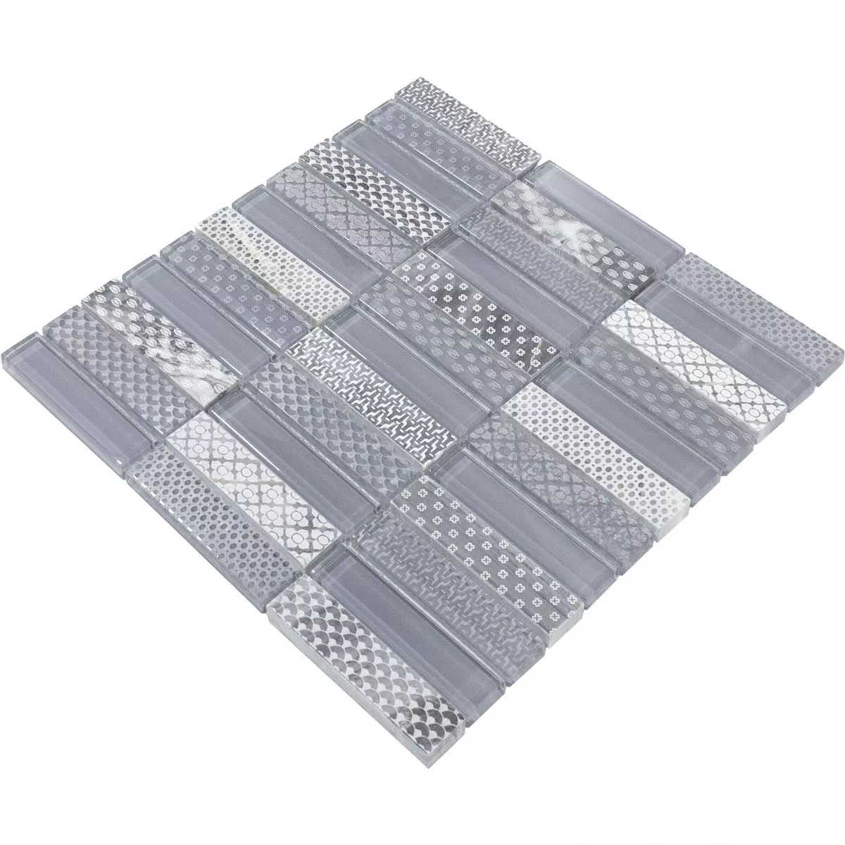 Glass Natural Stone Mosaic Tiles Celestiana Ornament Brick Grey Mix