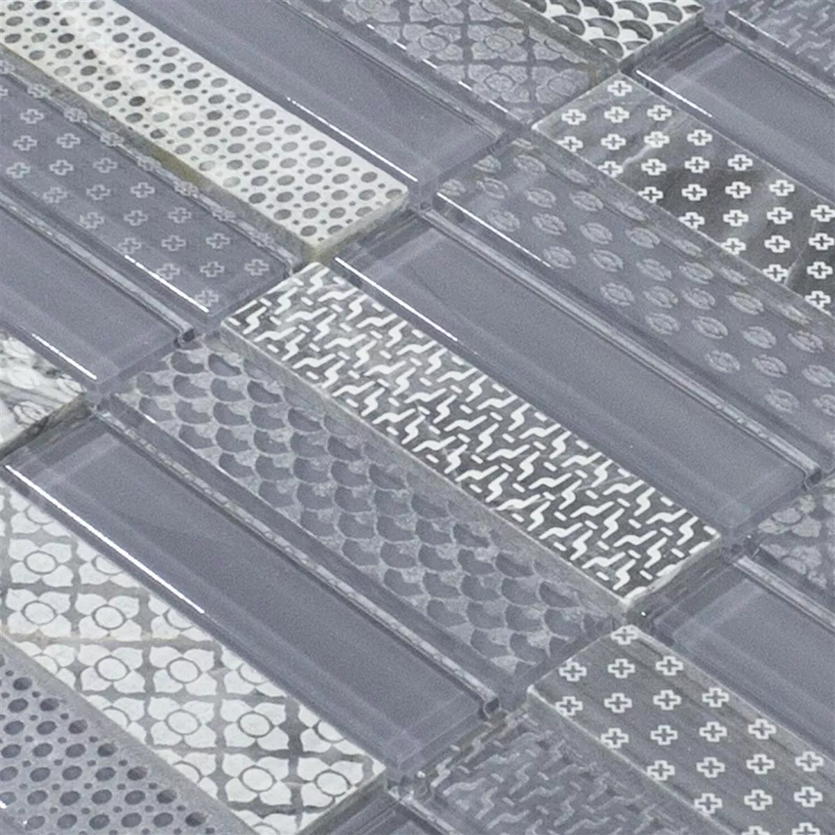 Glass natural stone mosaic tiles Celestiana Ornament Brick Mix - aesthetics in gray.