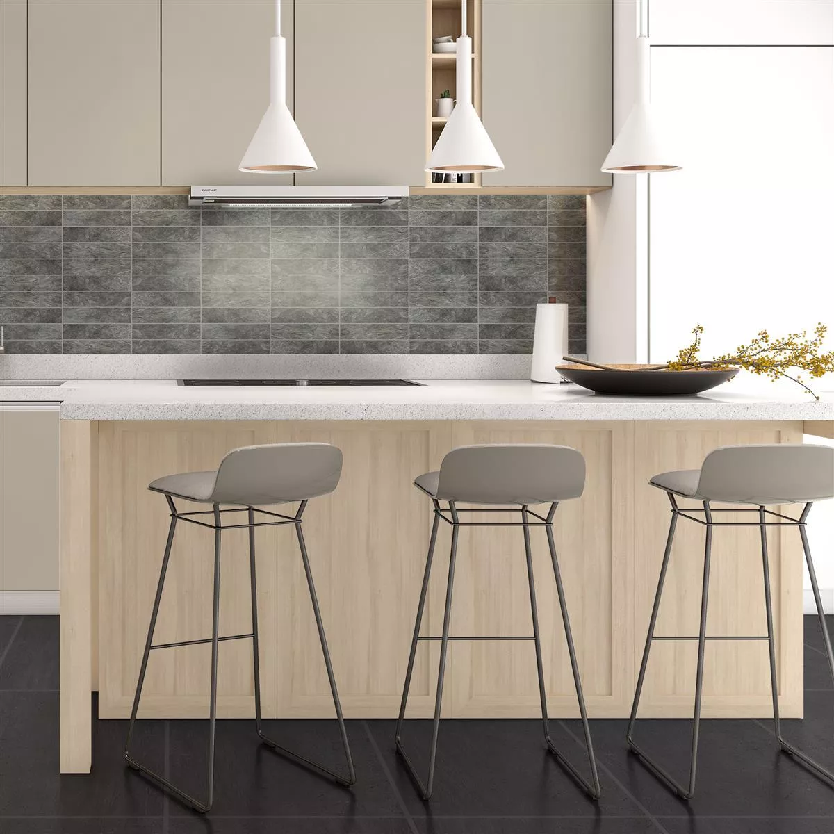Το ανθρακί χρώμα δίνει στα πλακάκια μια κομψή και διαχρονική αισθητική. Η ματ επιφάνεια εξασφαλίζει μια ευχάριστη αίσθηση και ταυτόχρονα αποτρέπει την εμφάνιση αντανακλάσεων ή αντανακλάσεων. Η κυματιστή και δομημένη επιφάνεια δίνει επίσης στα πλακάκια μια ενδιαφέρουσα υφή που πιάνει το φως με ιδιαίτερο τρόπο, δημιουργώντας ένα μοναδικό οπτικό αποτέλεσμα.