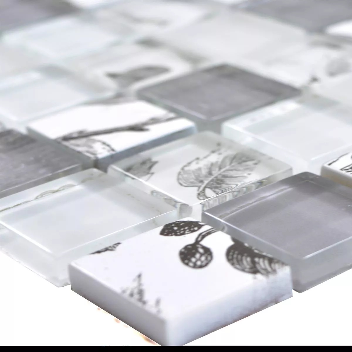 Πρότυπο από Γυάλινο Μωσαϊκό Πλακάκια Cornelia Ρετρό Oπτικά Ασπρο Γκρί
