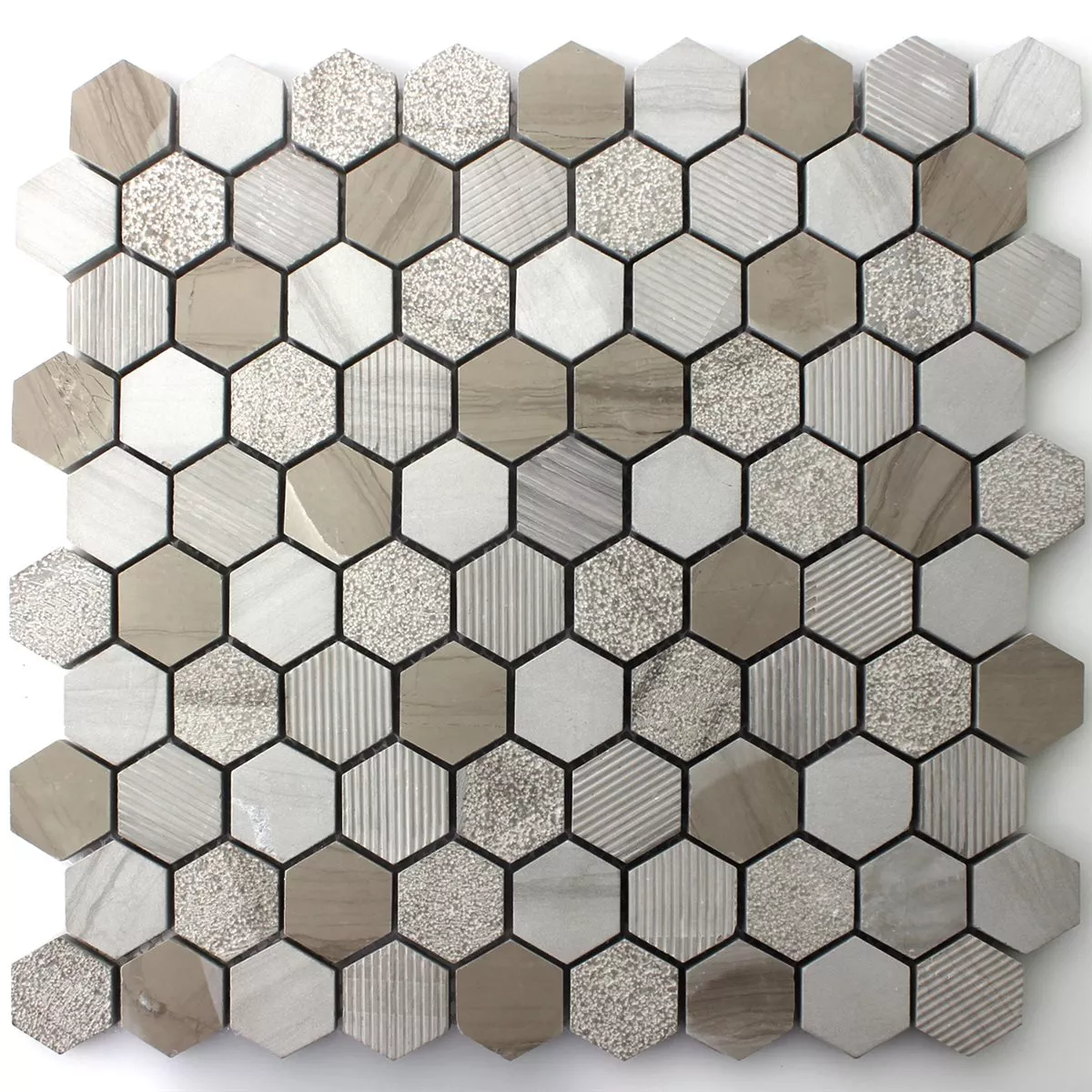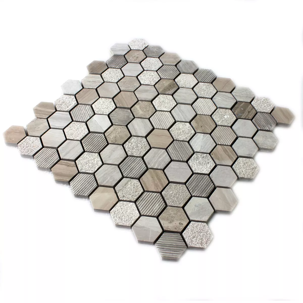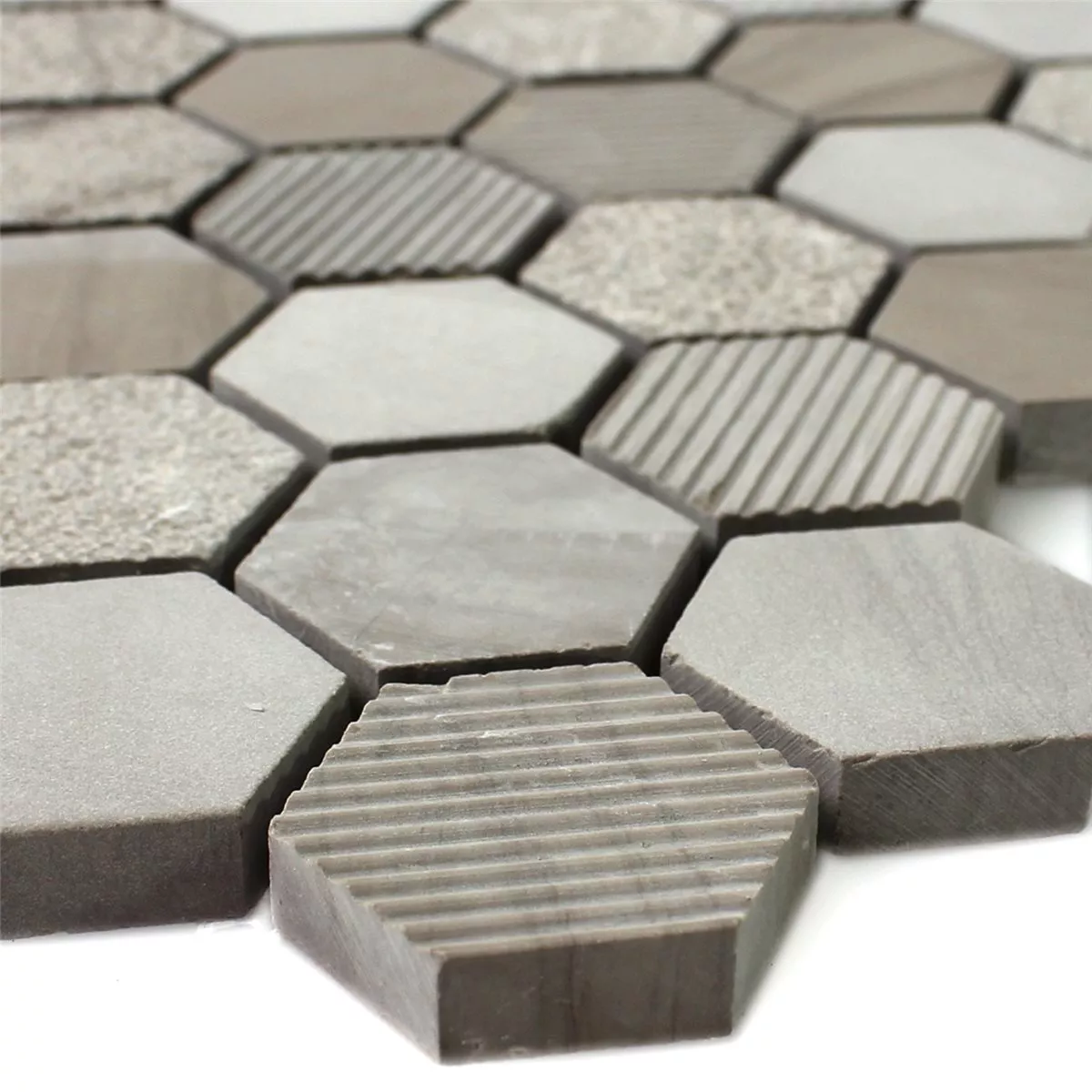 Ψηφιδωτά Πλακάκια Εξάγωνο Φυσική Πέτρα Mocca Kαφέ