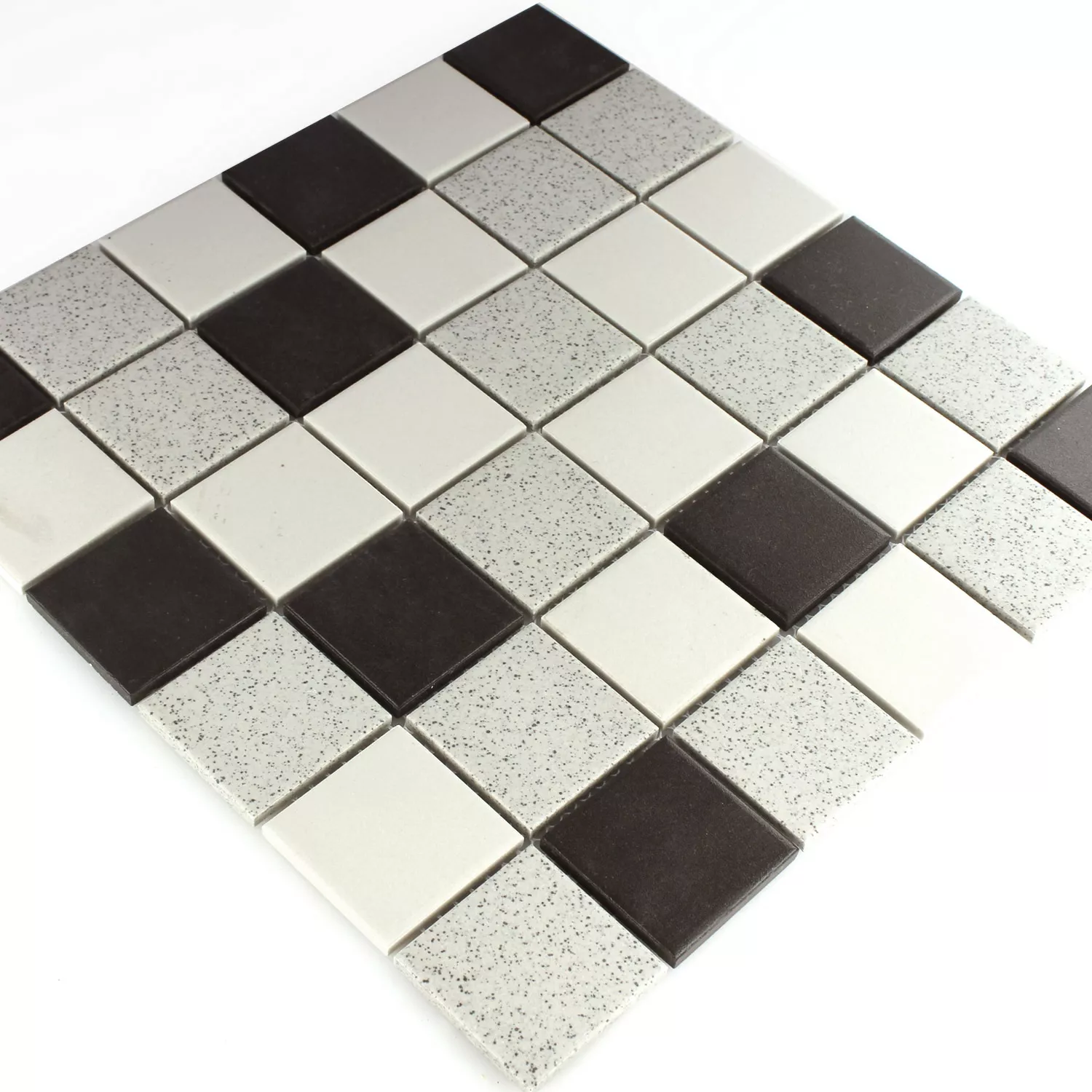 Το κεραμικό μωσαϊκό πλακάκι Monforte στο χρώμα μαύρο γκρι ματ χρησιμοποιείται για να πλακώσει ένα τυχαίο ή επιθυμητό σχέδιο στο πάτωμα ή στον τοίχο. Τα άσχημα είναι διαθέσιμα σε πολλές παραλλαγές και σχέδια. Τα μωσαϊκά πλακάκια, για παράδειγμα, χρησιμοποιούνται συχνά για μπάνια ή πίσω τοίχους κουζίνας. Πάνω απ 'όλα, τα ψηφιδωτά πλακάκια για το μπάνιο πρέπει να είναι αντιολισθητικά, ώστε να μην γλιστρήσει κανείς στο βρεγμένο πάτωμα μετά το ντους ή το μπάνιο. Τα πλακάκια έχουν αντίσταση ολίσθησης R10 και είναι δομημένα και χωρίς τζάμια. Έχουν ματ εμφάνιση και είναι κατασκευασμένα από κεραμικό. Τα ψηφιδωτά πλακάκια διατίθενται σε διάφορες εκδόσεις. Ο ενδιαφερόμενος πελάτης μπορεί να αγοράσει τα πλακάκια σε σχήματα εξάγωνο, τετράγωνο σχήμα, σχήμα κουμπιού ή σχήμα ραβδιού. Για παράδειγμα, τετράγωνα και εξάγωνα σχήματα είναι διαθέσιμα σε διαφορετικά μεγέθη μωσαϊκού. Το χρώμα για όλες τις παραλλαγές είναι ένας συνδυασμός μαύρου και γκρι.