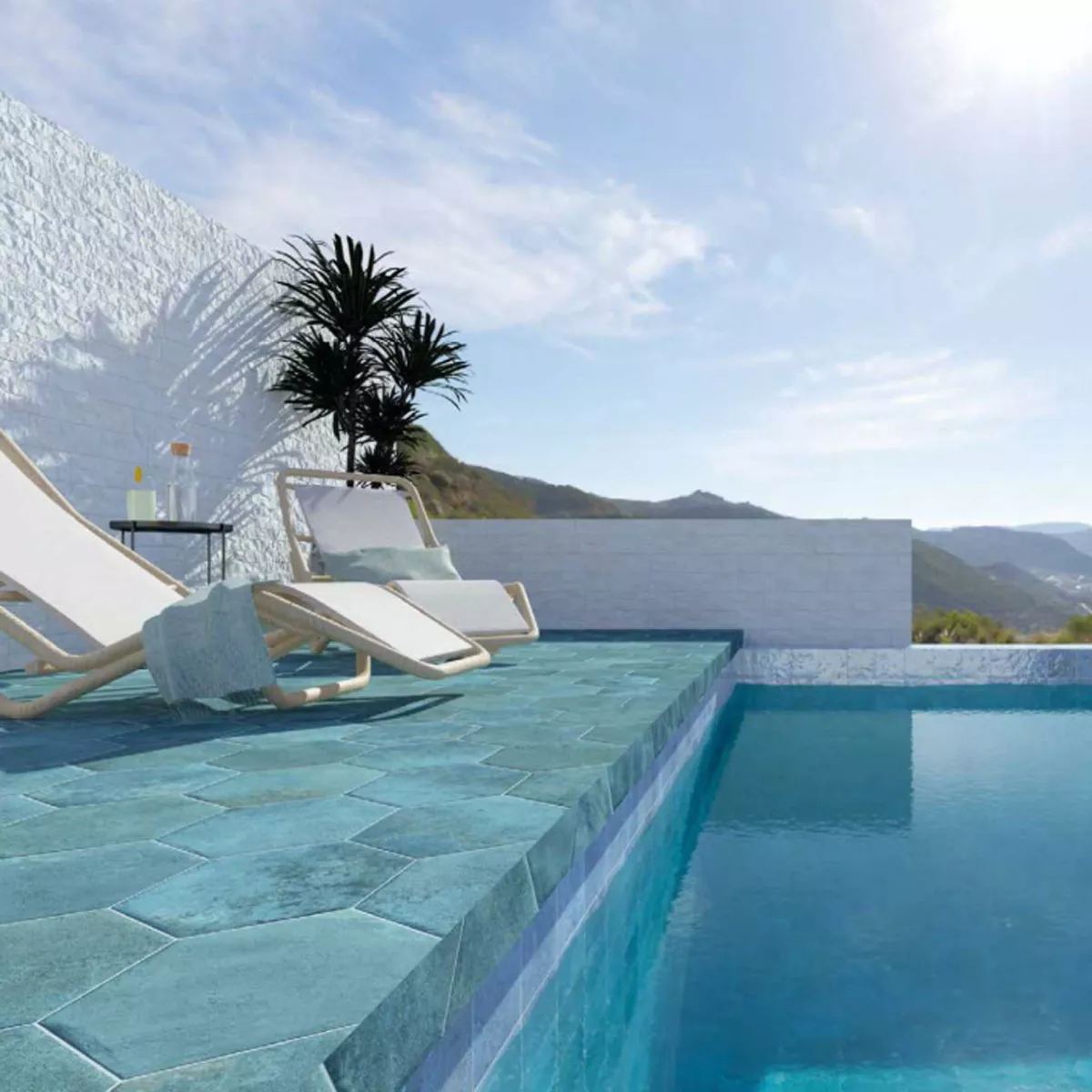 Otkrijte naše svestrane Palencia Turquoise Hexagon pločice izrađene od visokokvalitetnog porculanskog kamena - savršen izbor za vaš bazen, bazen i mnoga druga područja!