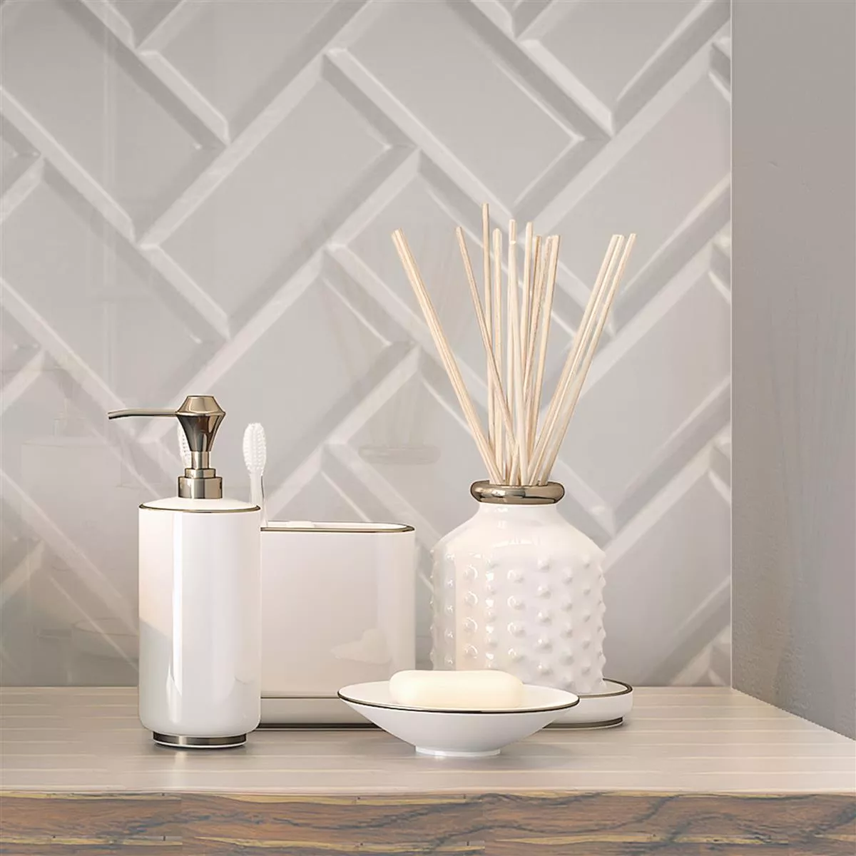 Metro zidne pločice “Heliopolis Facette White” kombiniraju bezvremensku eleganciju s daškom retro šarma. Svaki paket (1 m²) sastoji se od 88 glaziranih keramičkih pločica u pravokutnom formatu (7,5x15 cm), koje impresioniraju sjajnom površinom i višestrukim dizajnom.