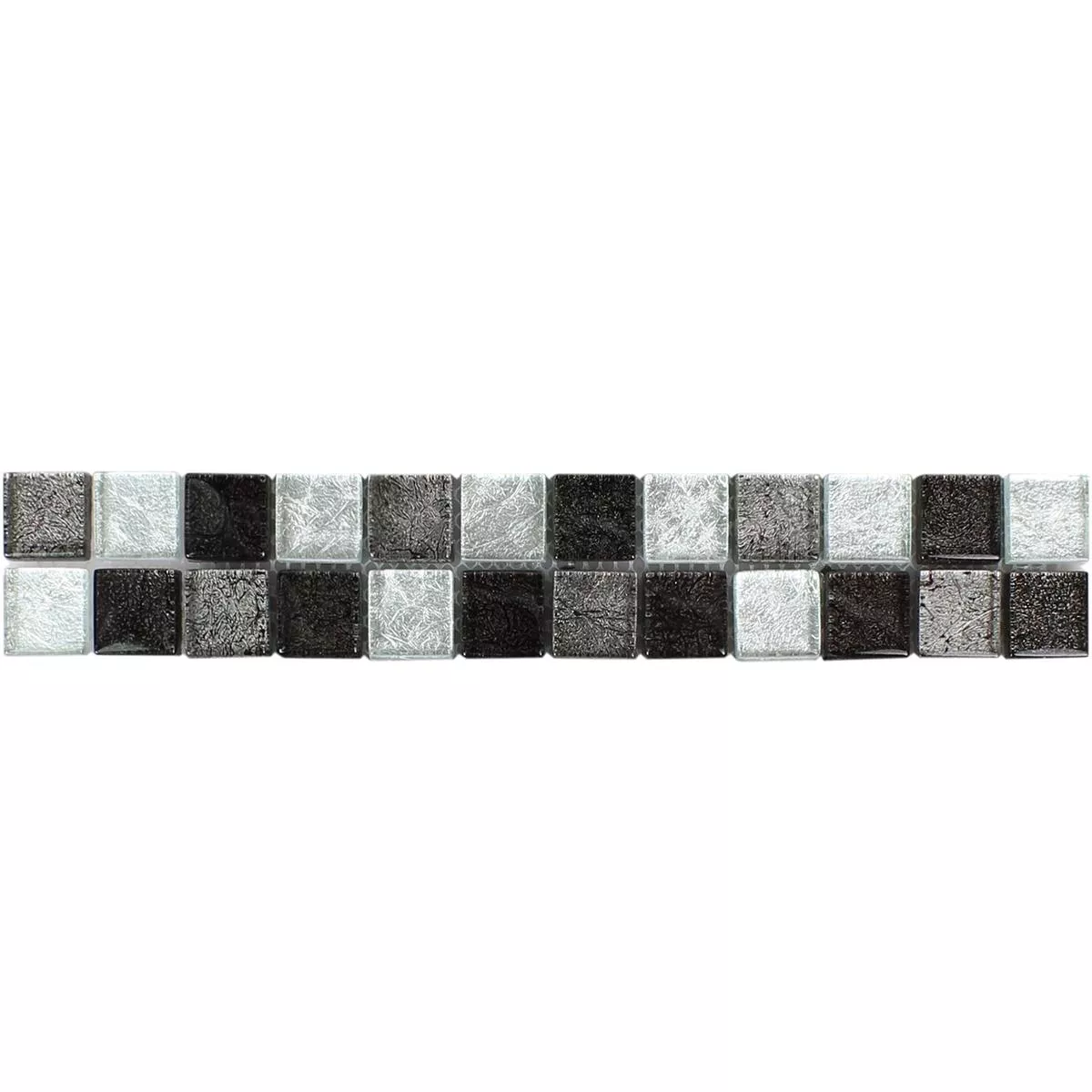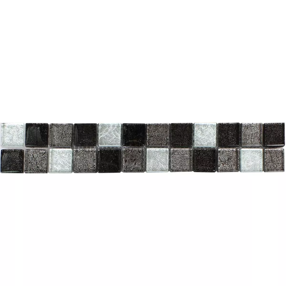 Glas Fliesenbordüre Johnstown Schwarz Silber Q23