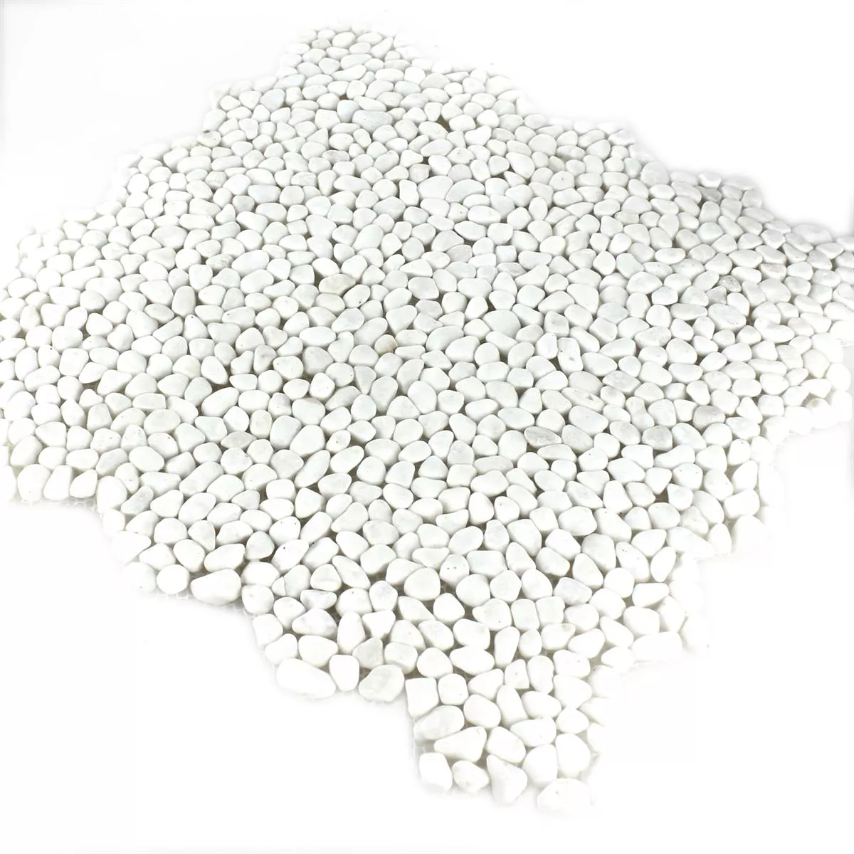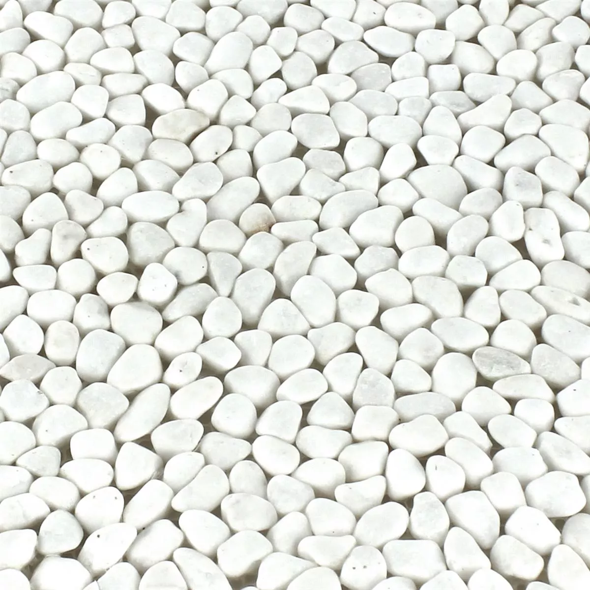 River pebble natural stone mosaic tiles Micro in white inspire as a natural product with their structure, design and color. They are suitable for laying in outdoor areas, living rooms and damp areas. The micro tiles with variable stone sizes can be put together to form a mosaic that gives surroundings a special atmosphere. With the tiles made of natural material, a decorative eye-catcher can be created.