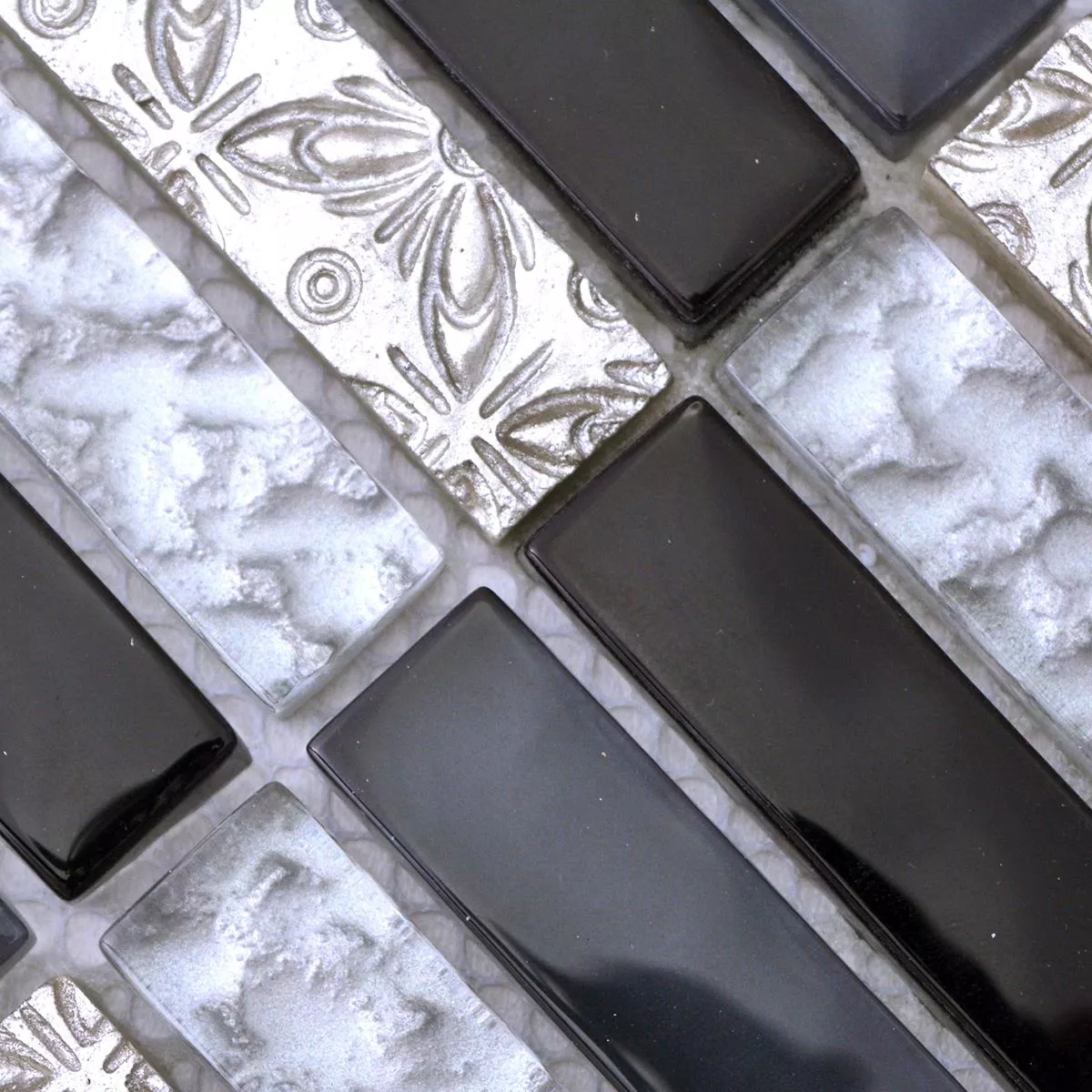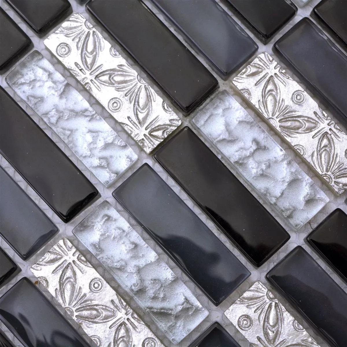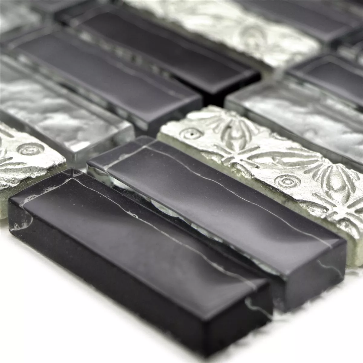 Campione Mosaico Di Vetro Pietra Naturale Piastrelle Conchita Nero Argento