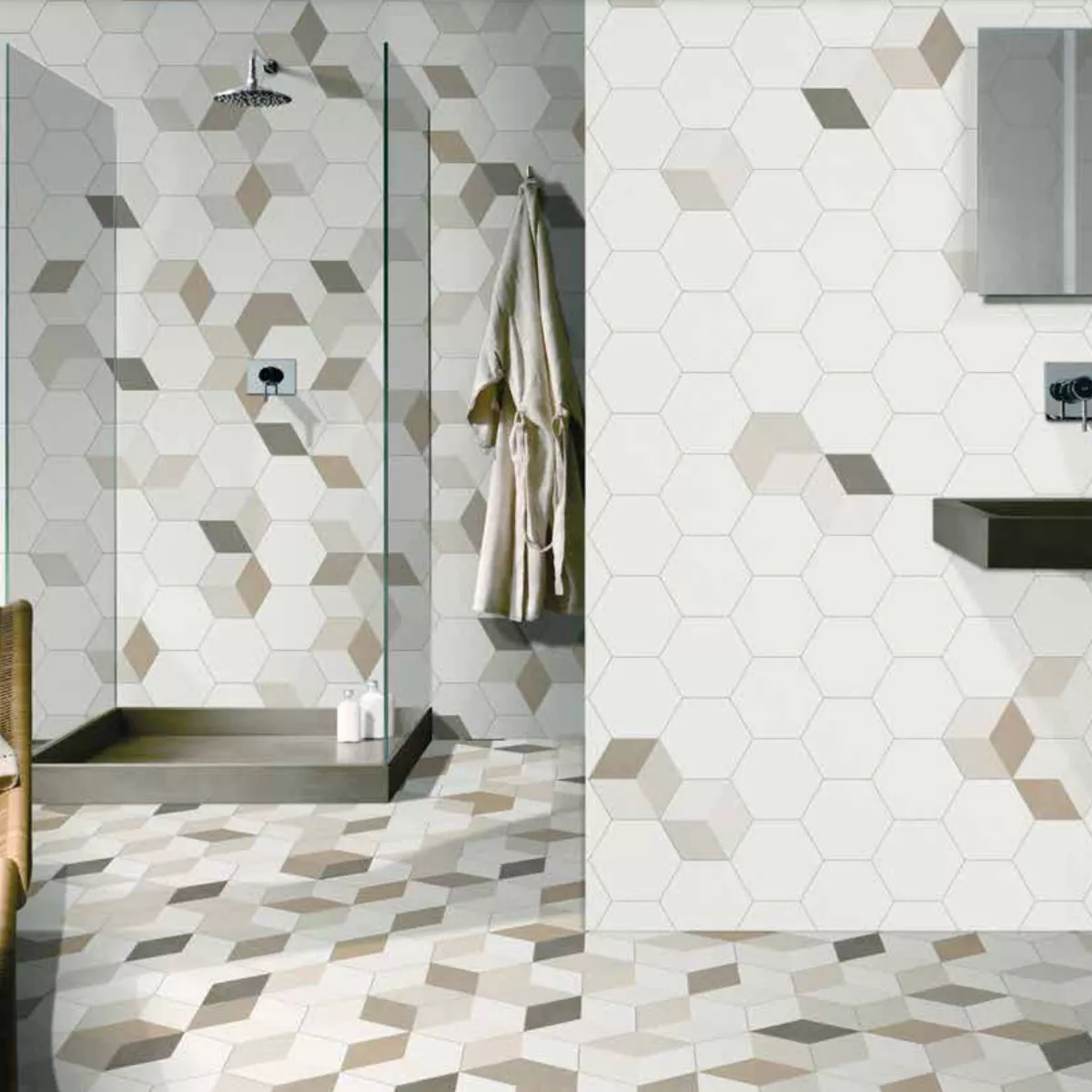 Dai un tocco speciale ai tuoi ambienti con le piastrelle in gres porcellanato Novalima Hexagon. L'esclusivo aspetto del cubo 3D e i materiali di alta qualità li rendono la scelta perfetta per i proprietari di casa attenti allo stile che apprezzano il design e la funzionalità.