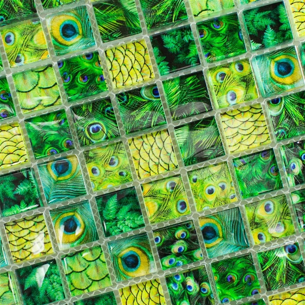 Mosaico Di Vetro Piastrelle Peafowl Verde 23