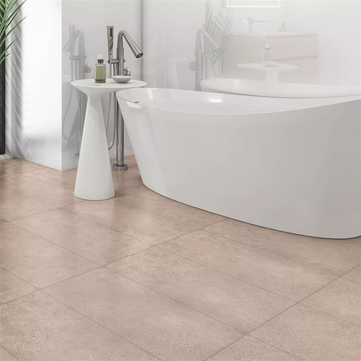 Il pavimento "RIAD" in marrone chiaro combina l'aspetto della pietra naturale con la funzionalità moderna. Questa piastrella in gres porcellanato ha una superficie opaca e, grazie alle sue proprietà antiscivolo, offre sicurezza e comfort, soprattutto nelle zone umide.
