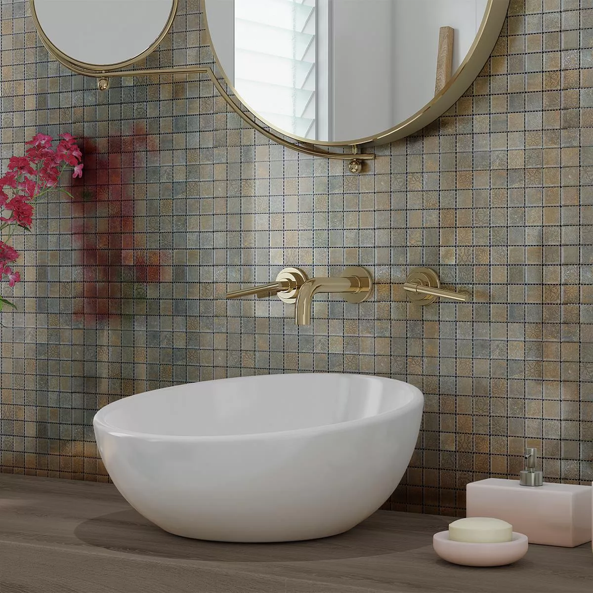 La largeur de joint de 2 mm assure un aspect de joint propre et uniforme, qui met en valeur de manière optimale l'aspect brun rouille métallique. Avec le carreau de mosaïque Lusco , vous choisissez une combinaison unique d'esthétique et de fonctionnalité qui crée un look distinctif dans chaque pièce.