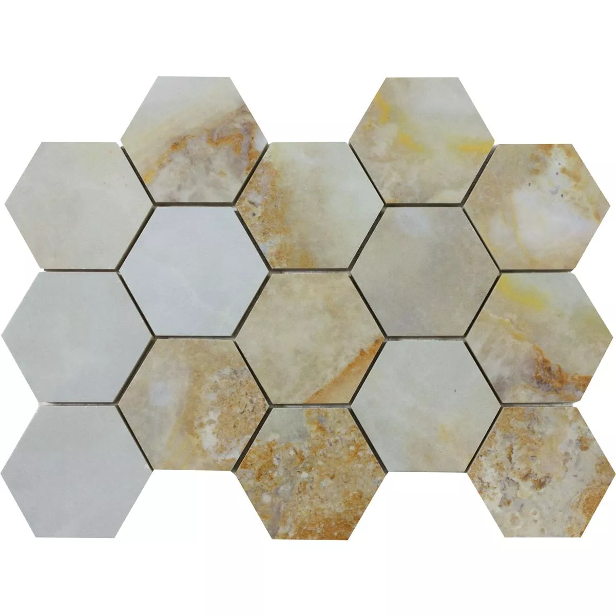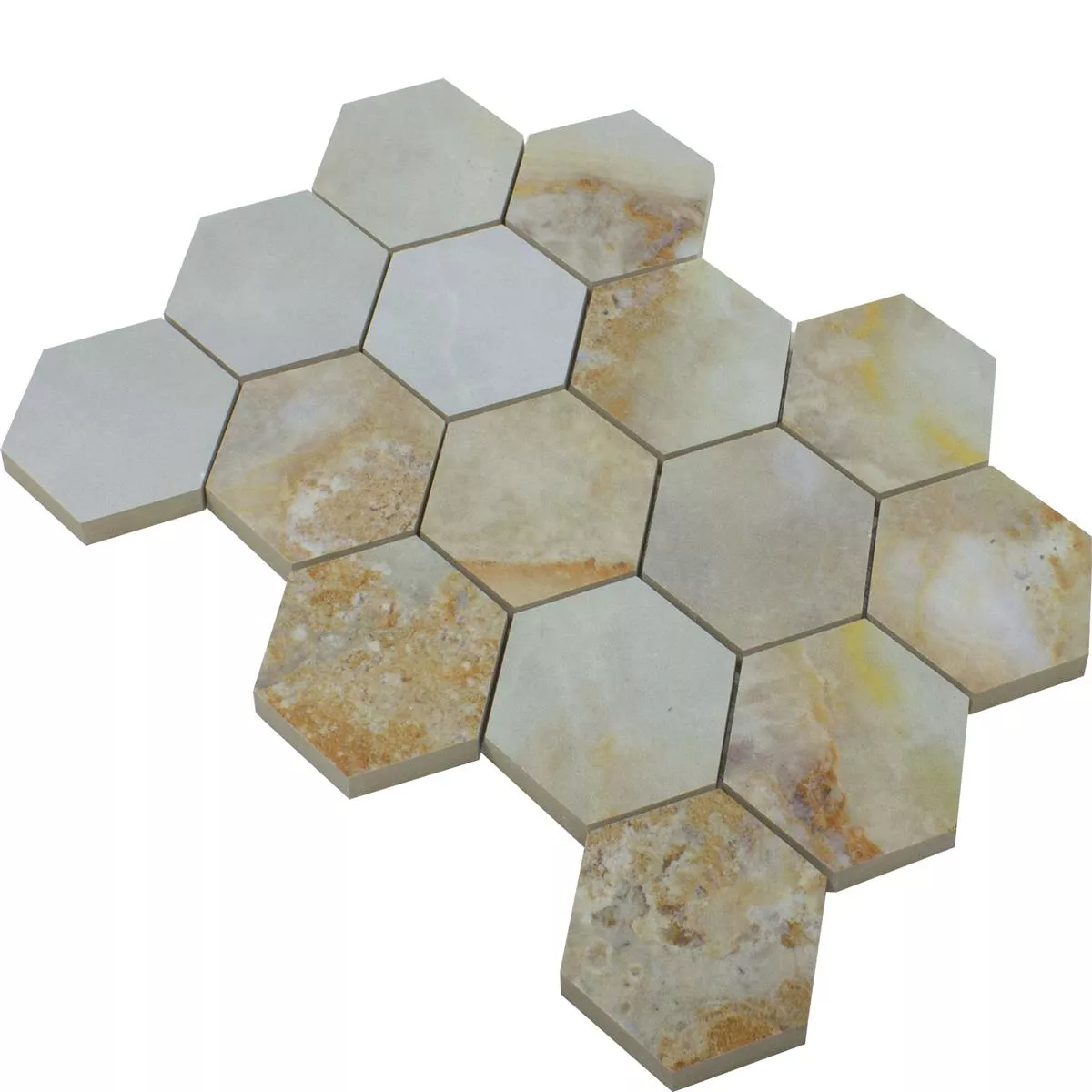 Ceramic Mosaic Tiles Naftalin Hexagon Brown Blanc