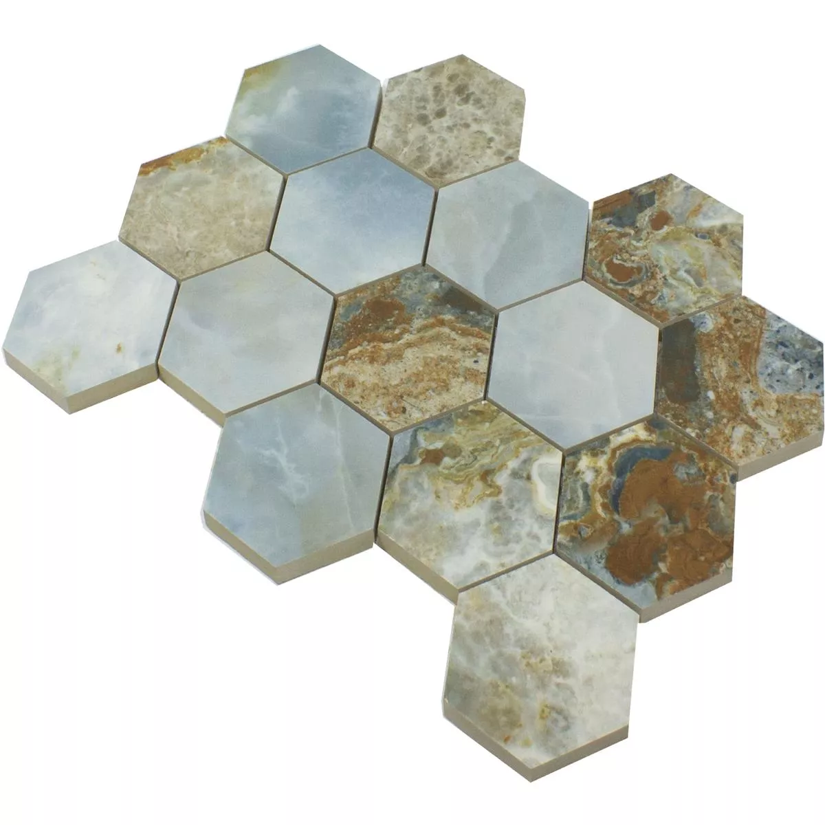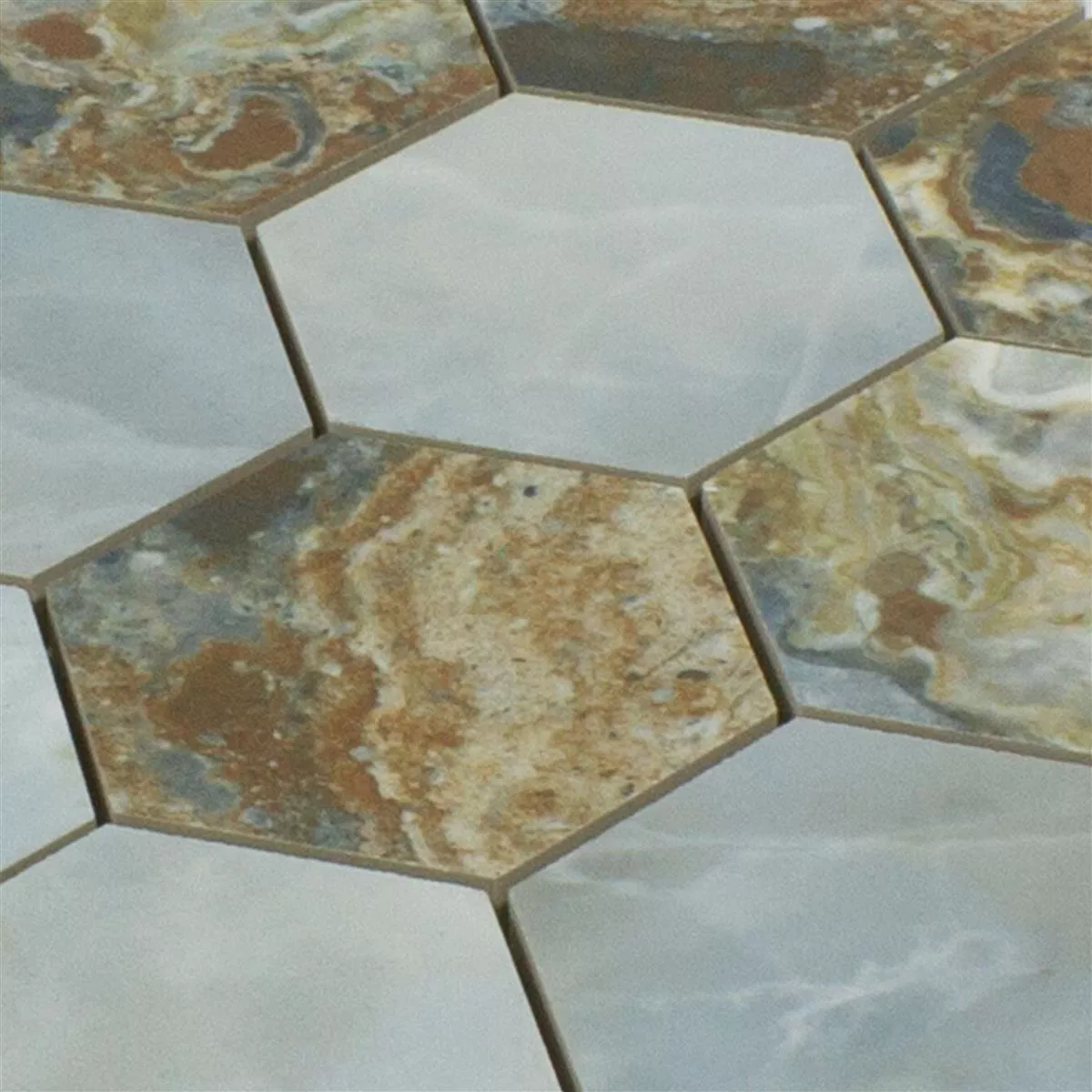 Ceramic Mosaic Tiles Naftalin Hexagon Brown Blue