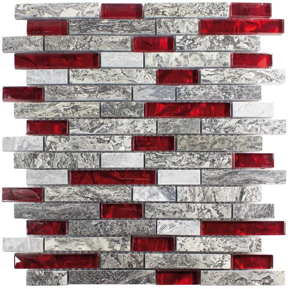 Glass Mosaic Natural Stone Tiles Manavgat Grey Red Brick