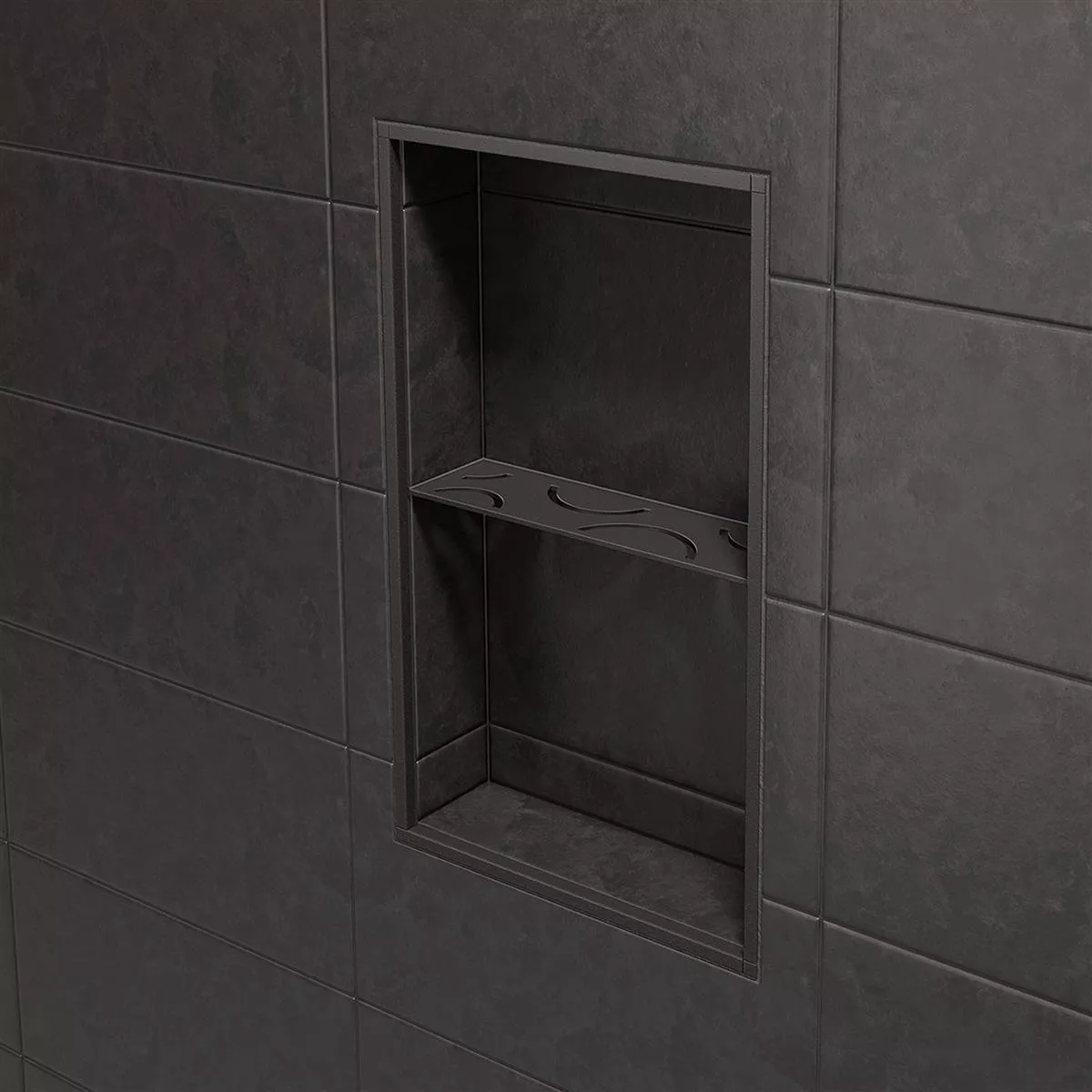 Schlüter-SHELF-N-S1 Anthracite Rectangular niche wall shelf With Schlüter-SHELF-N-S1 you can equip the prefabricated Schlüter-KERDI-BOARD niche with a precisely fitting shelf during tile laying. And that's not all: you also have maximum flexibility in terms of material and design. The high-quality niche wall shelf is made of either brushed stainless steel or textured-coated aluminum.