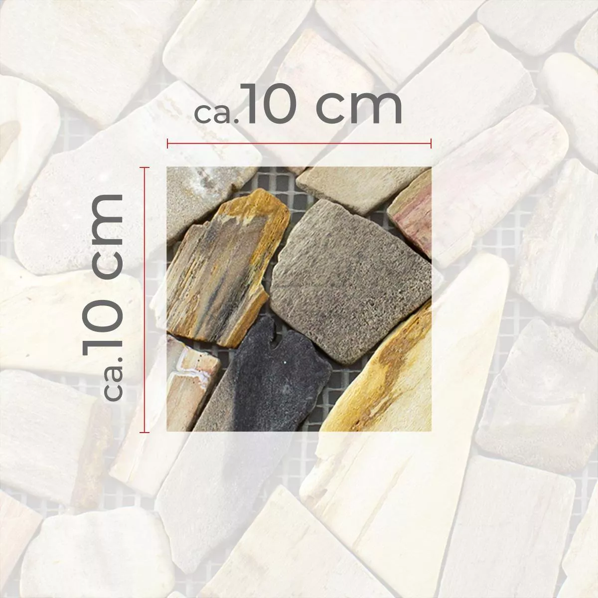 Every tile and every mosaic have different requirements for trimming, laying and und processing due to individual material characteristics and usage conditions. Please ask a local expert for correct and secure laying of your mosaics or tiles. We are not liable for unprofessional usage and faulty workmanship of constructions materials.