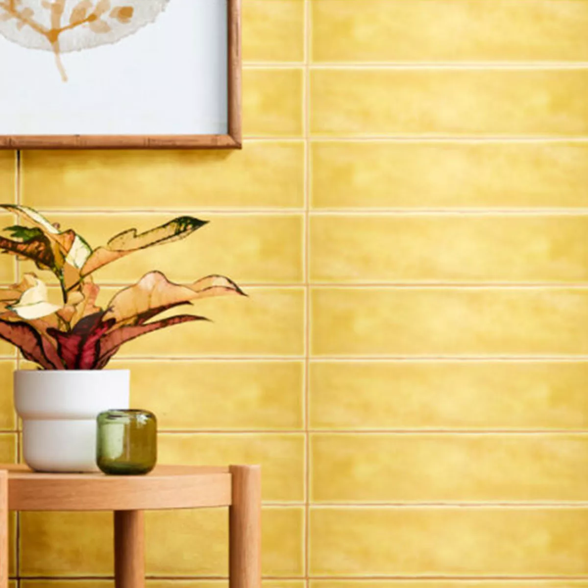 Bring a fresh atmosphere to your rooms with our Lugo wall tiles in wavy yellow. These glazed rectangular tiles measuring 7.5x30cm and 8.4mm thick give your walls a unique vintage look. The wavy, glossy surface in yellow creates a lively and appealing aesthetic.