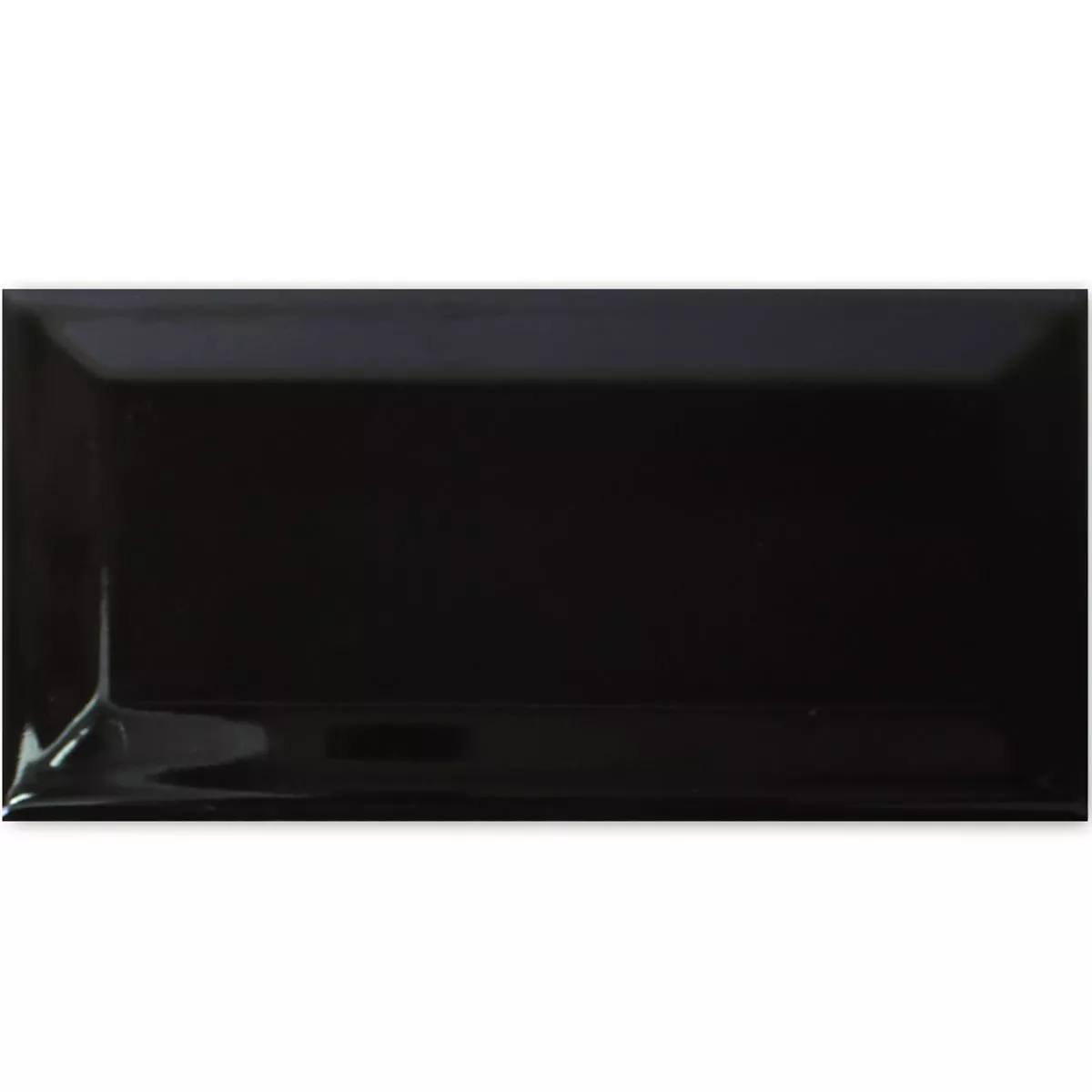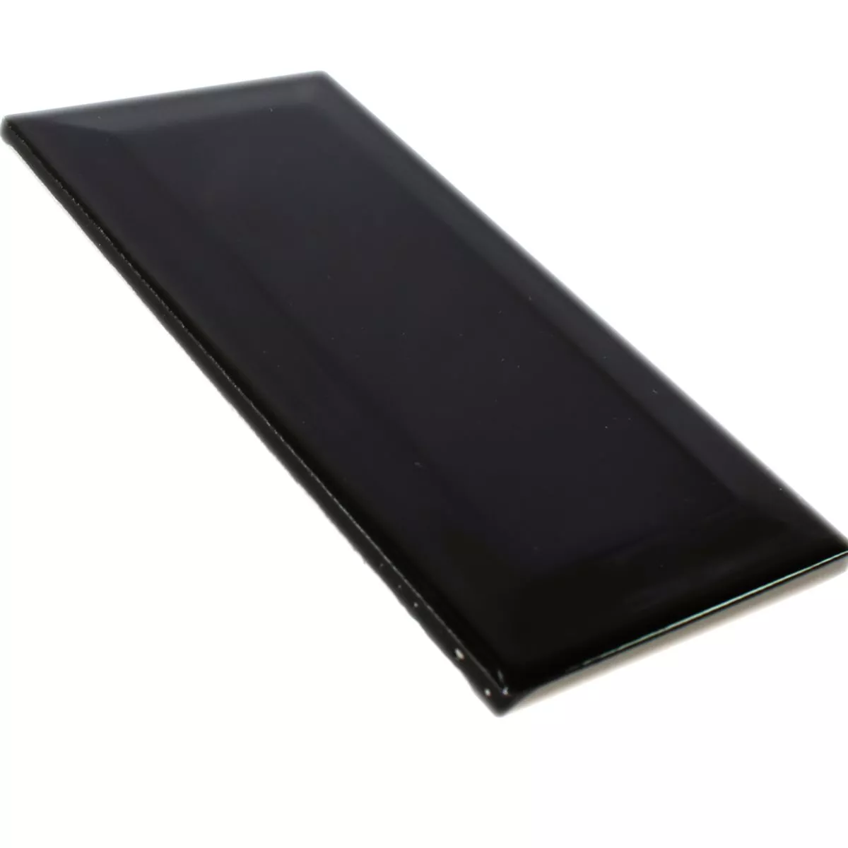 Metro Wall Tiles Lava Black Glossy Facet 7,5x15cm