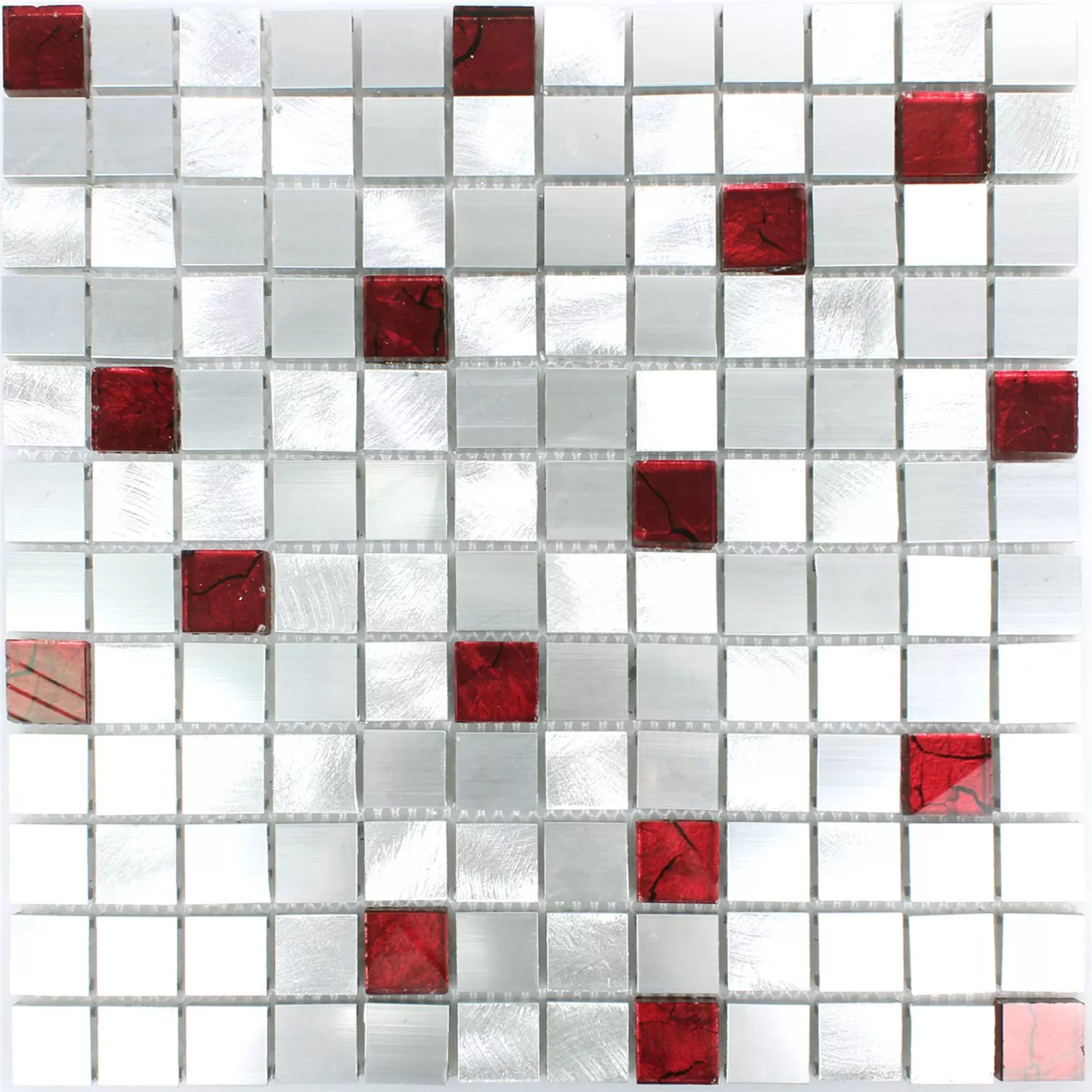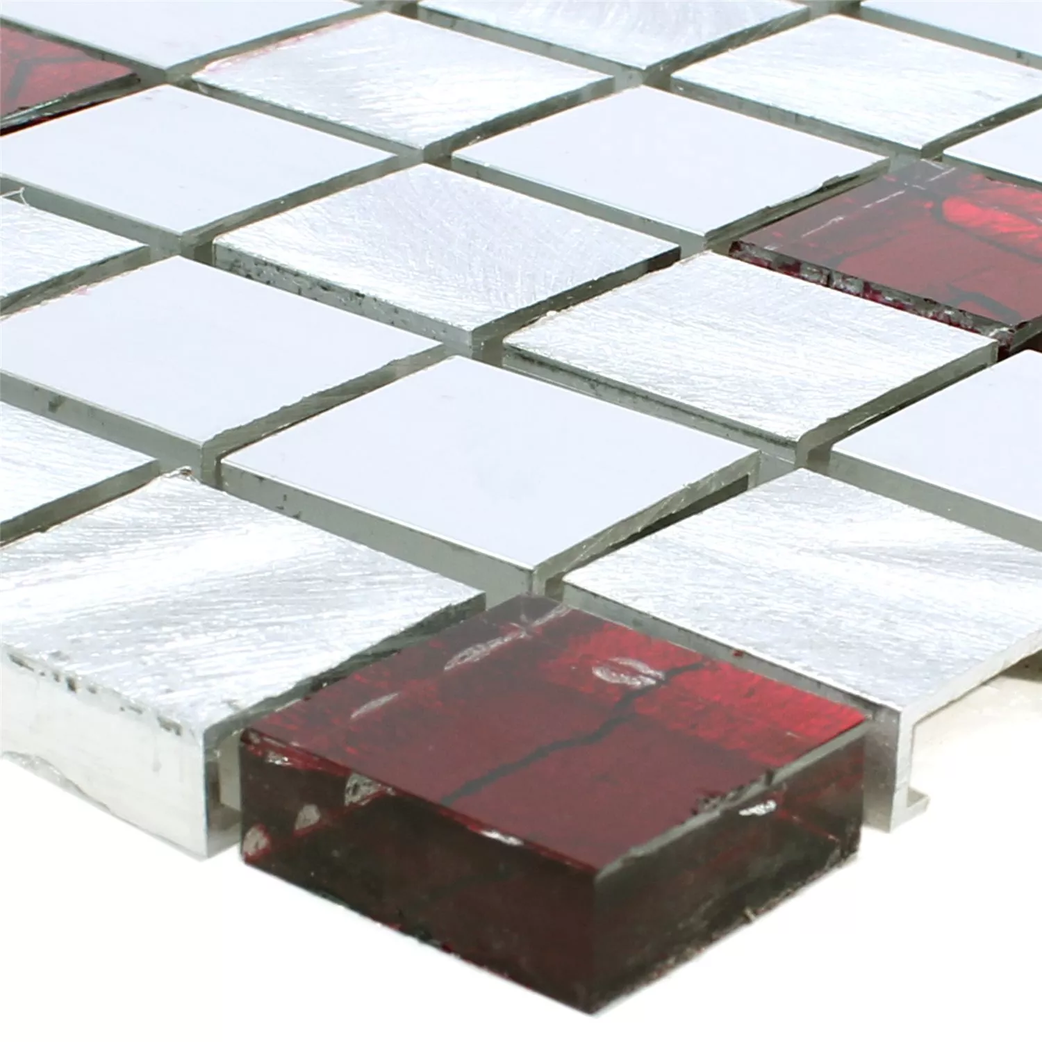 Mosaic Tiles Aluminium Glass Maira Silver Red