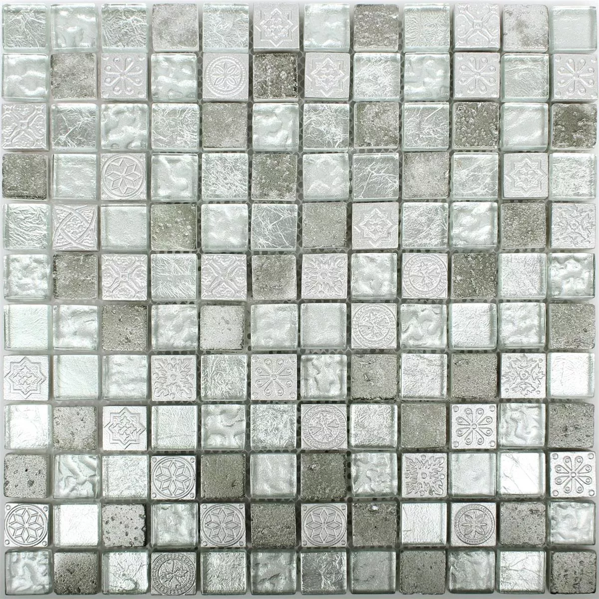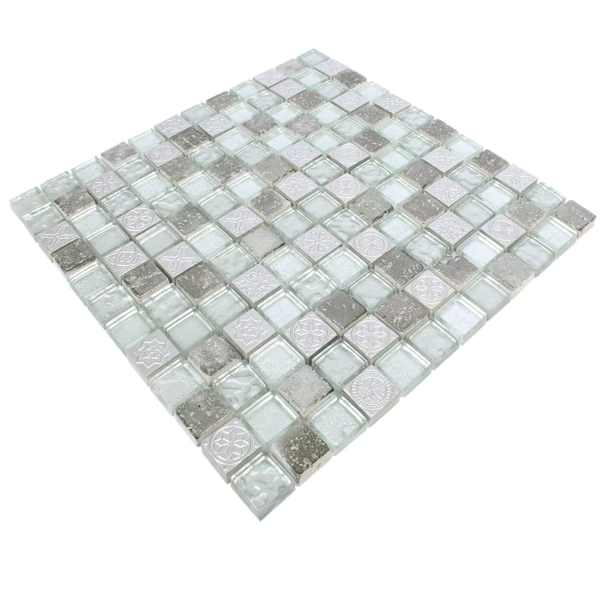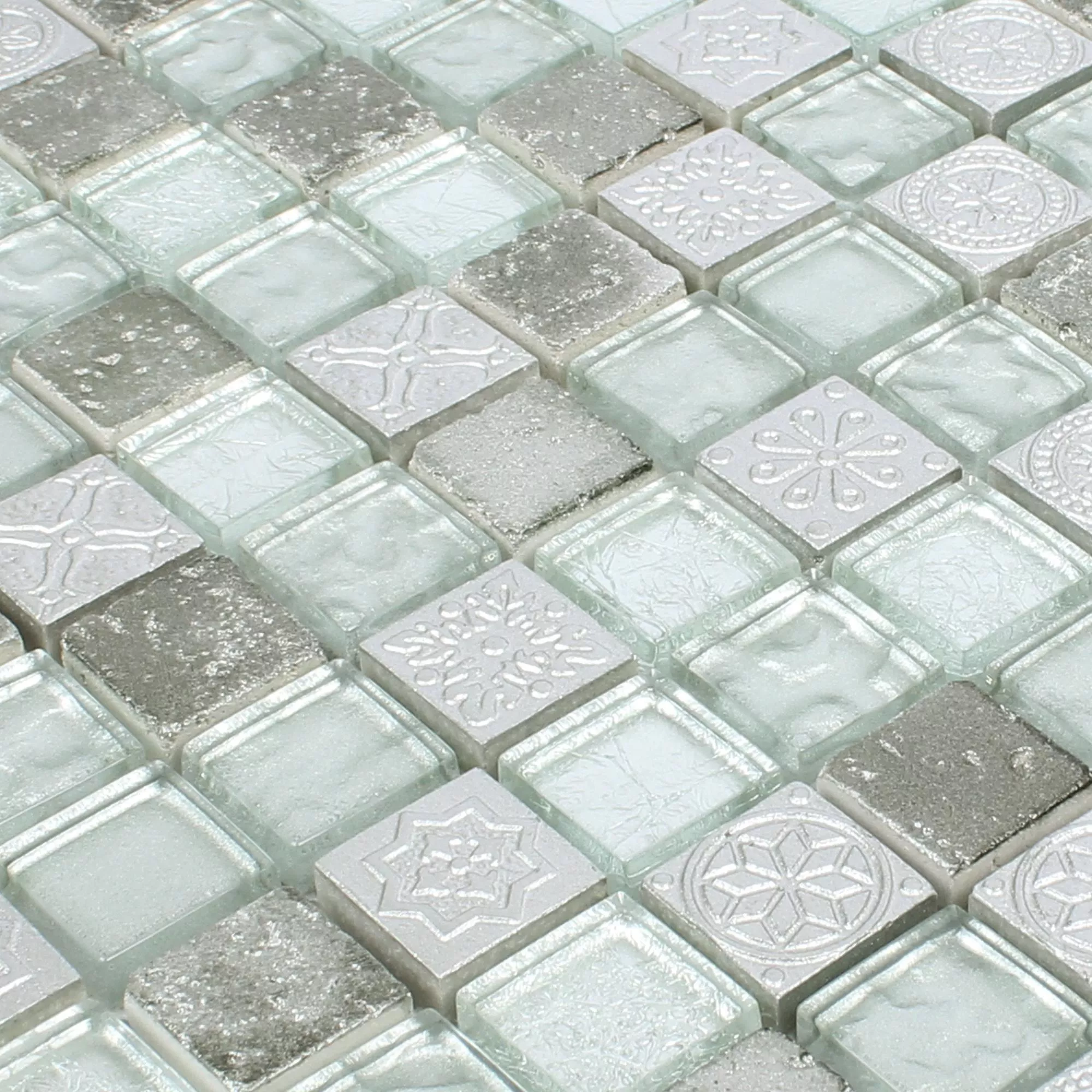 Mosaic Tiles Georgia Glass Natural Stone Mix Silver