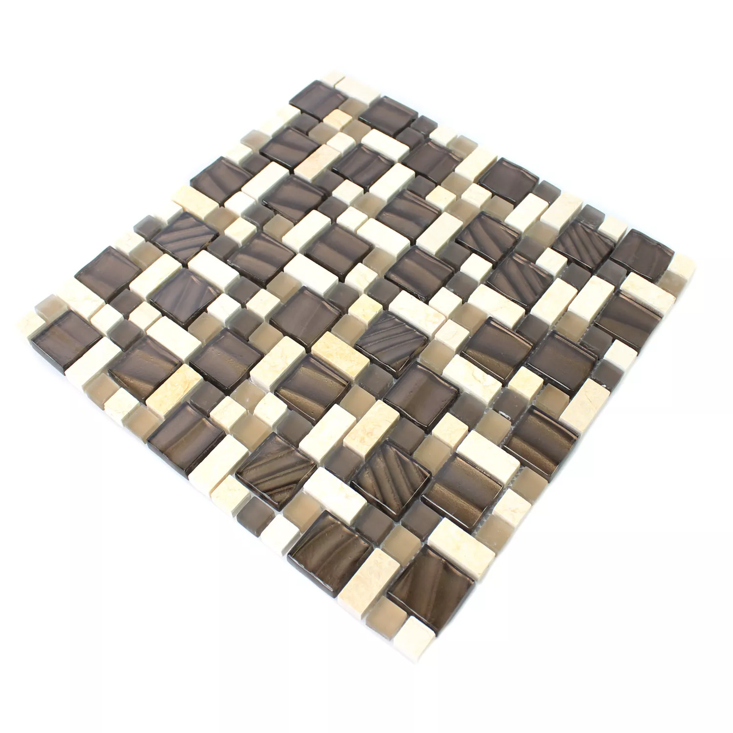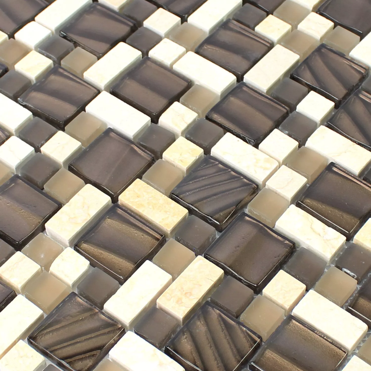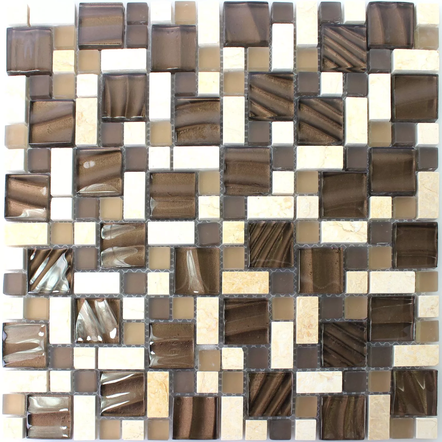 Mosaic Tiles Glass Natural Stone Brown Beige