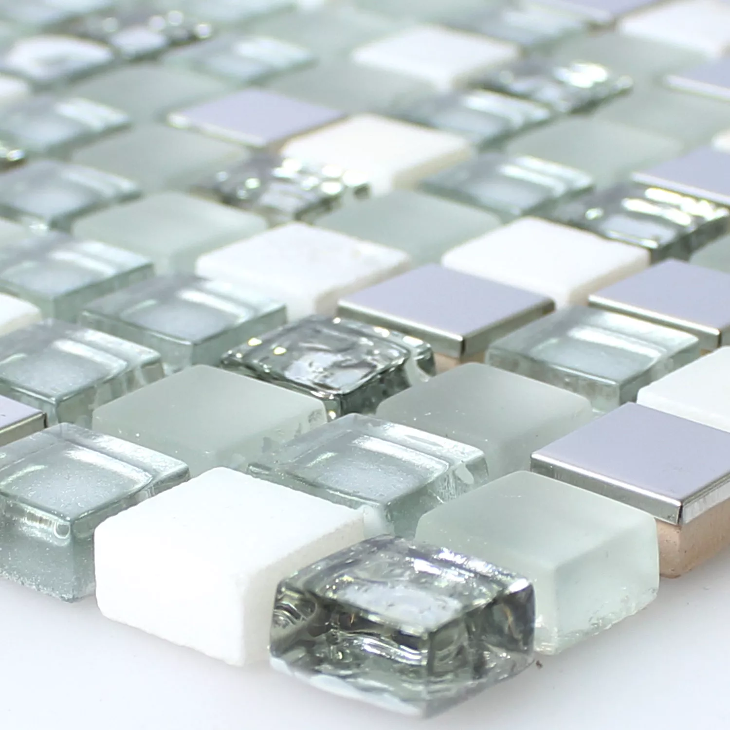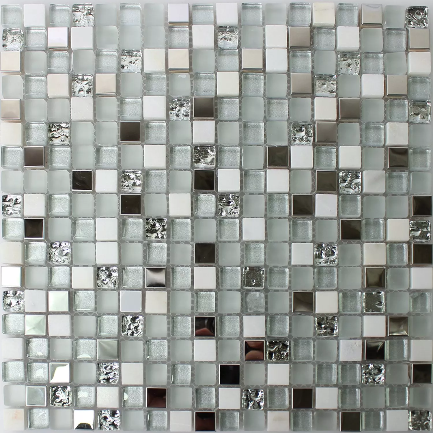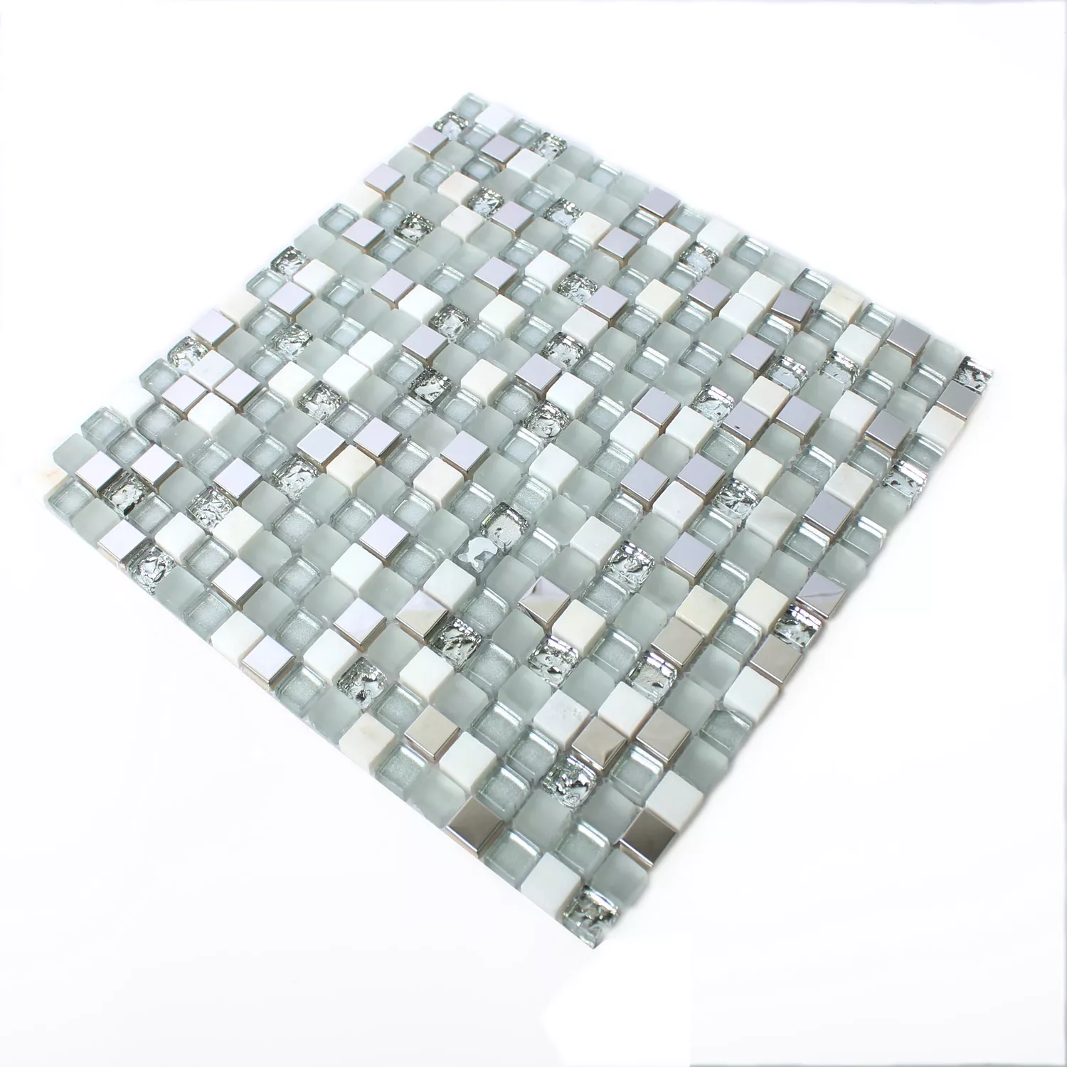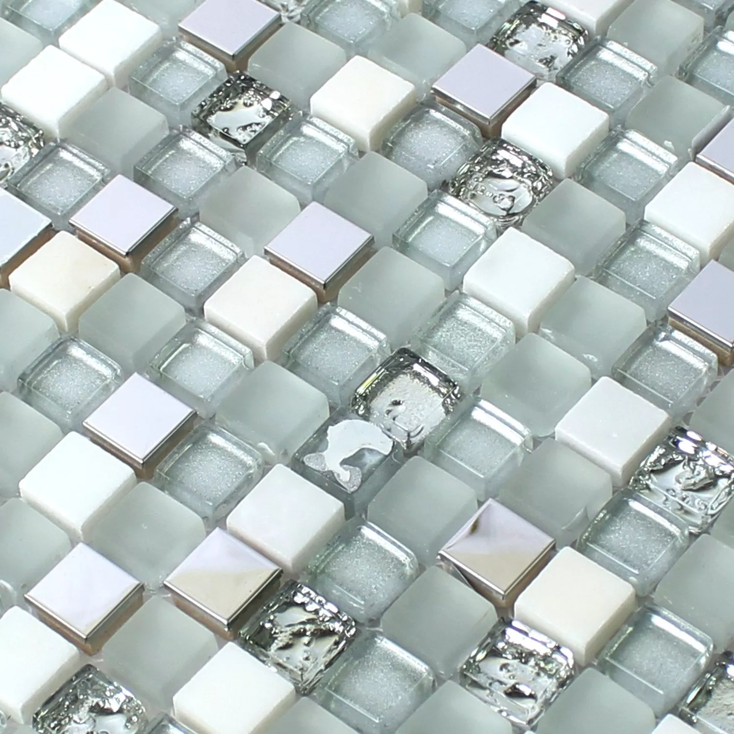 Mosaic Tiles Glass Stainless Steel Natural Stone White Silver