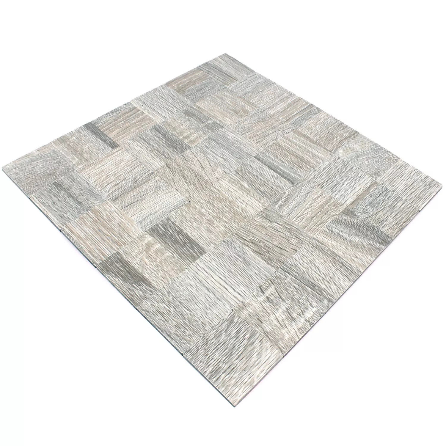 The Mosaic Tiles Reynosa Gray in matt wood look are self-adhesive and can be attached to the wall without additional material. Attaching the tiles is very easy as they have a self-adhesive layer on the underside. This means that no additional glue needs to be mixed. The tiles have a thickness of 4 mm and are very robust. The wood-look metal is easy to maintain.