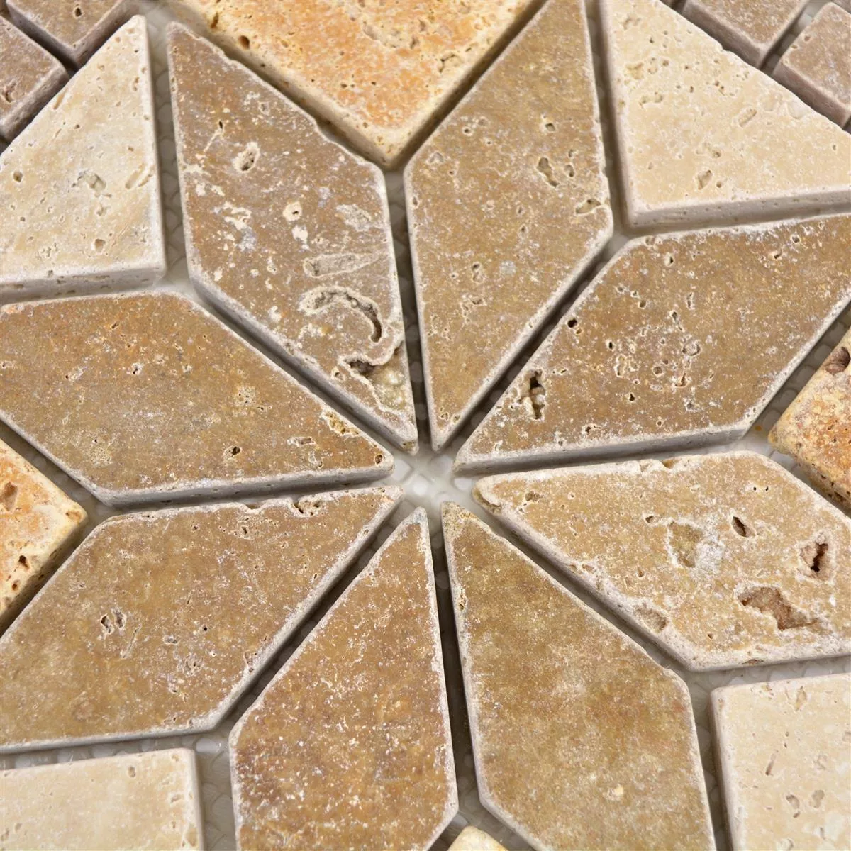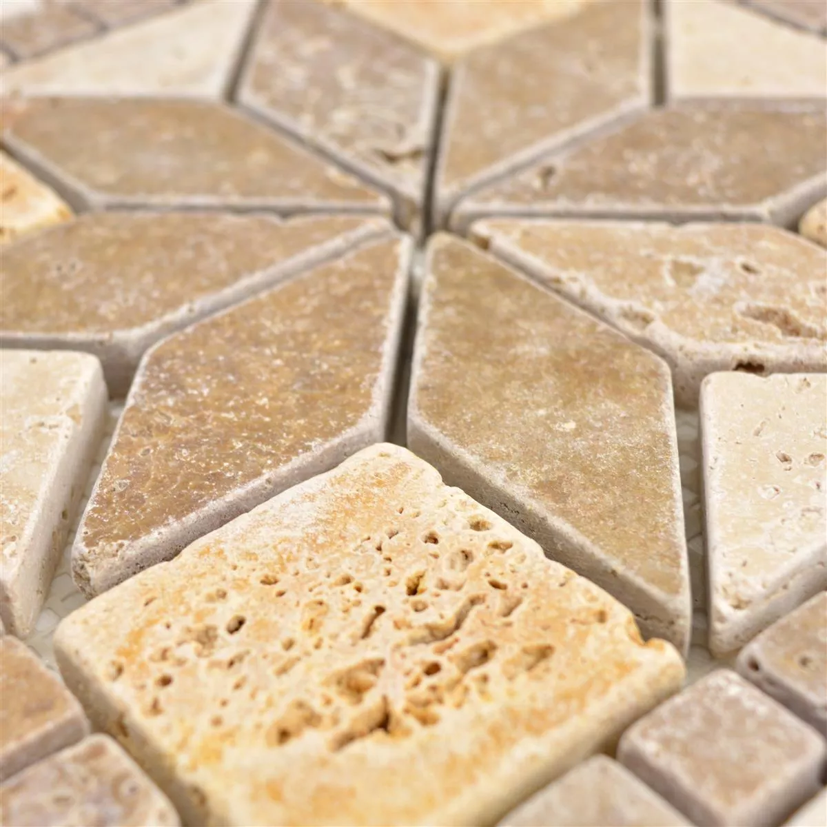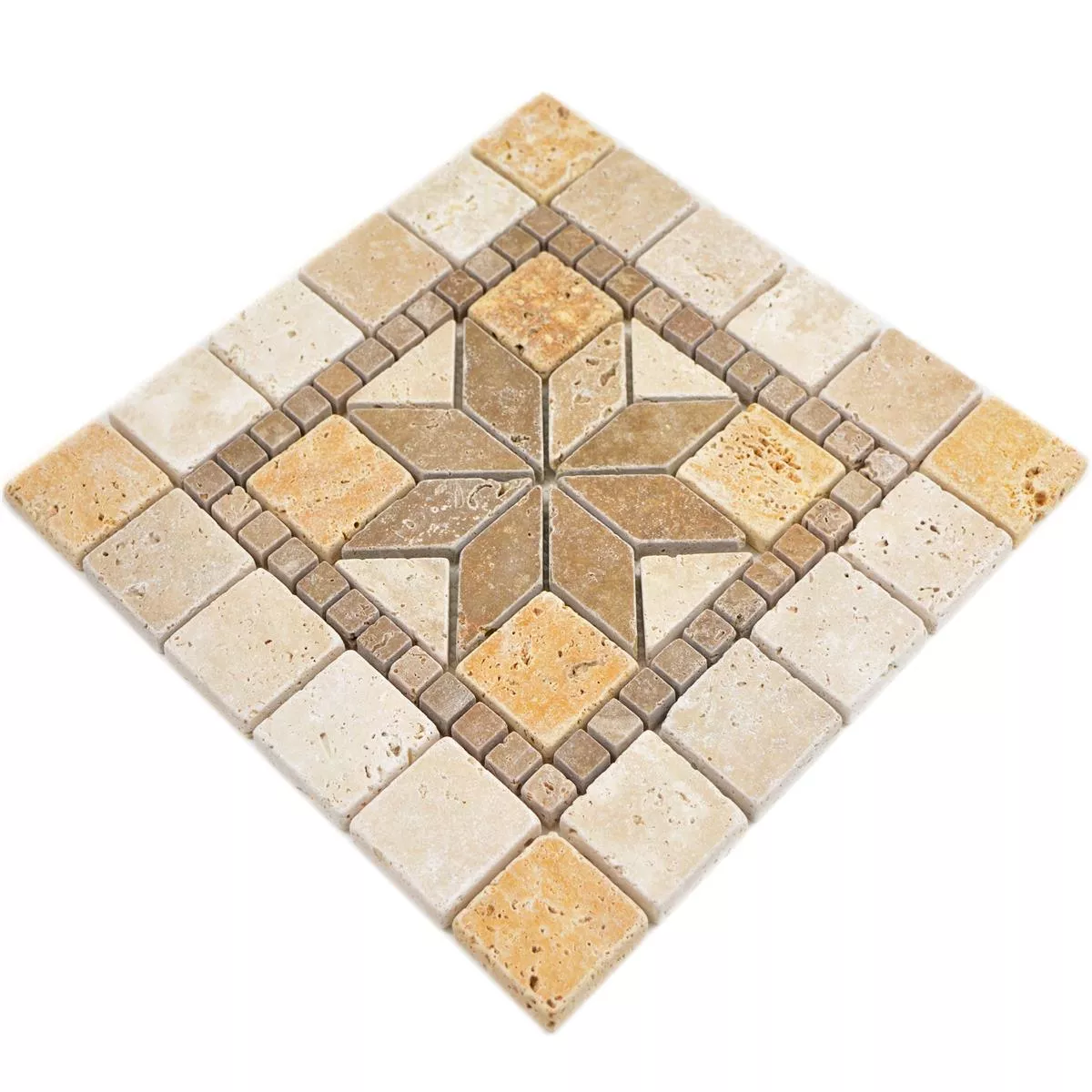 Een natuursteenmozaïek is een blikvanger. Mozaïeken werden lang voor onze jaartelling ontworpen met religieuze en alledaagse motieven. Tegenwoordig profiteren woonruimtes van mozaïeken. Natuursteen Rosone Volney Beige Bruin Goud 30x30cm bieden een schat aan designmogelijkheden.