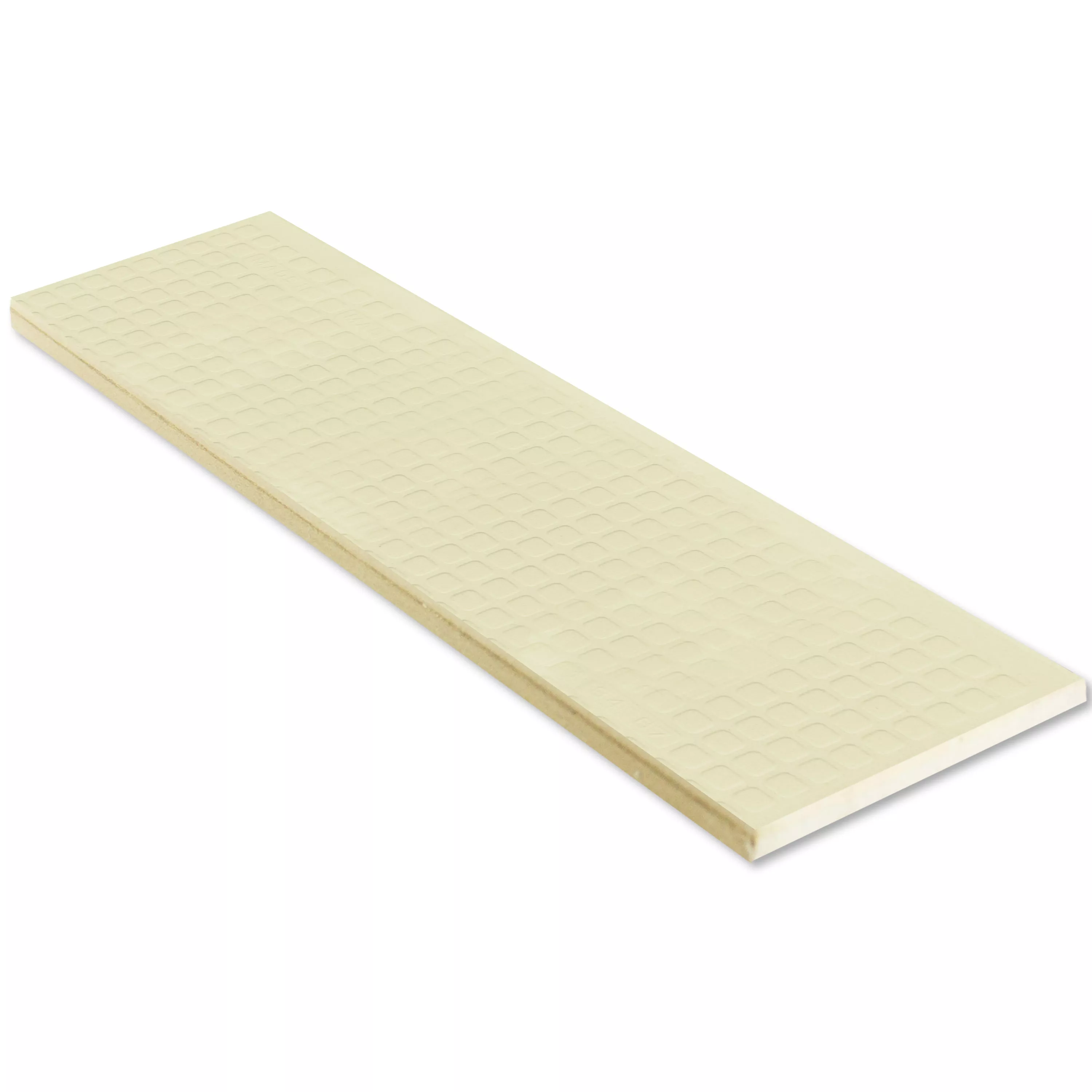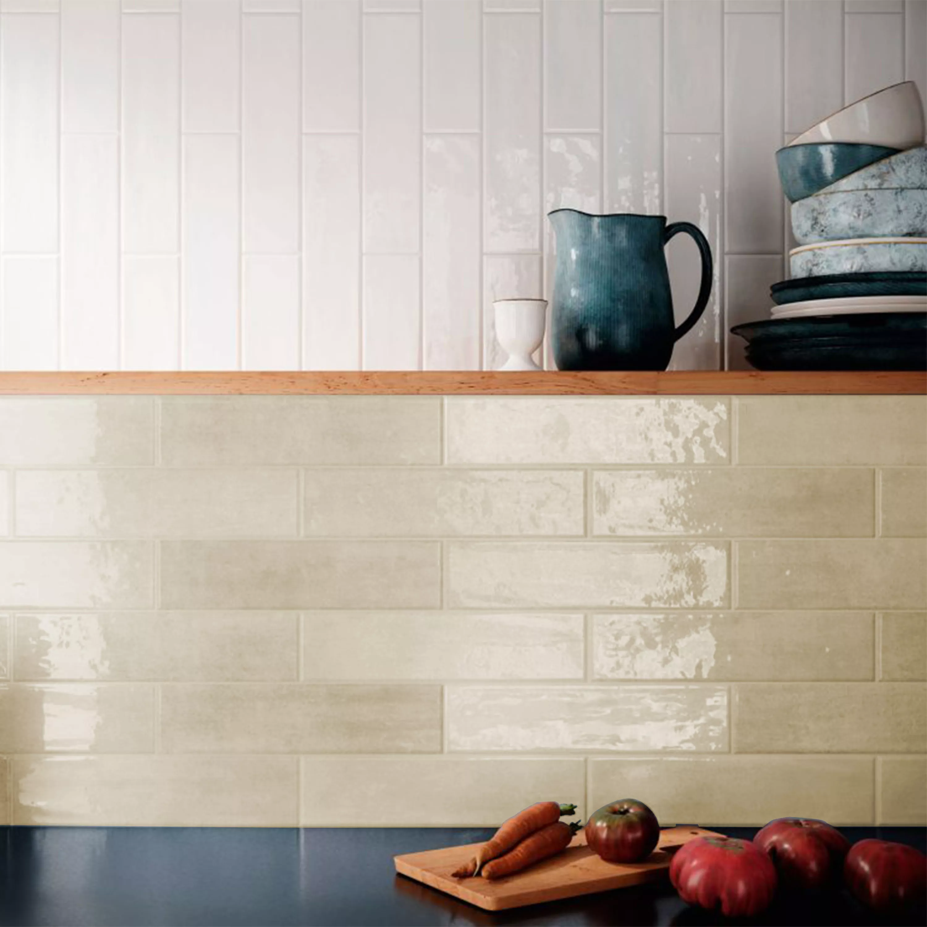 Voeg een vleugje verfijning toe aan uw muren met onze Verbania geglazuurde wandtegels in glanzend ivoor. Deze vierkante tegels van 7,5 x 30 cm en 8,4 mm dik geven je huis een vintage esthetiek. Het golvende oppervlak geeft de tegels een unieke textuur, terwijl het glanzende oppervlak het licht reflecteert en een heldere sfeer creëert.