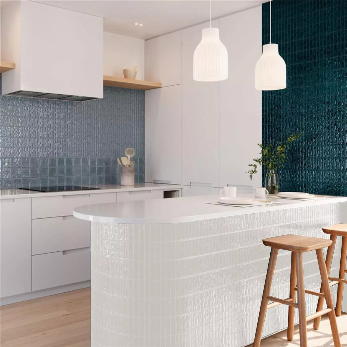 Geef je muren een tijdloze elegantie met onze Verbania stokwandtegels in glanzend wit en golvende structuur. Deze geglazuurde vierkante tegels van 20x20 cm en 7,8 mm dik geven je huis een vintage esthetiek. Het golvende, glanzende oppervlak geeft uw kamers een subtiele dynamiek.