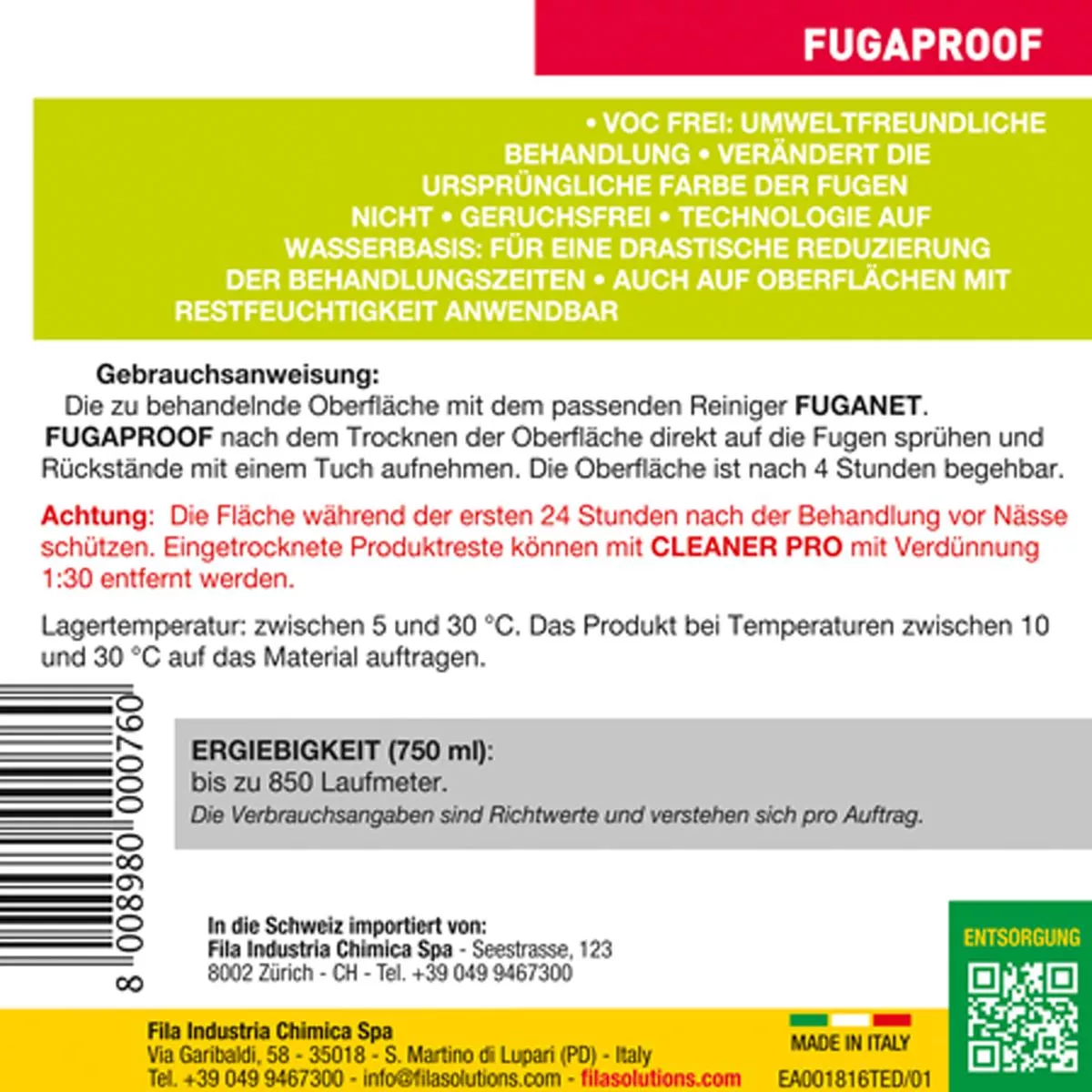 Beskytt området mot fuktighet de første 24 timene etter behandling. Tørkede produktrester som ikke ble fjernet under påføring kan fjernes med EASYWASH eller CLEANER PRO fortynnet 1:30.