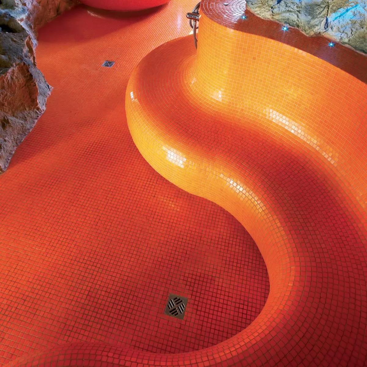 I og rundt svømmebassenger, der flisene kontinuerlig utsettes for fuktighet, gir de den nødvendige motstanden.