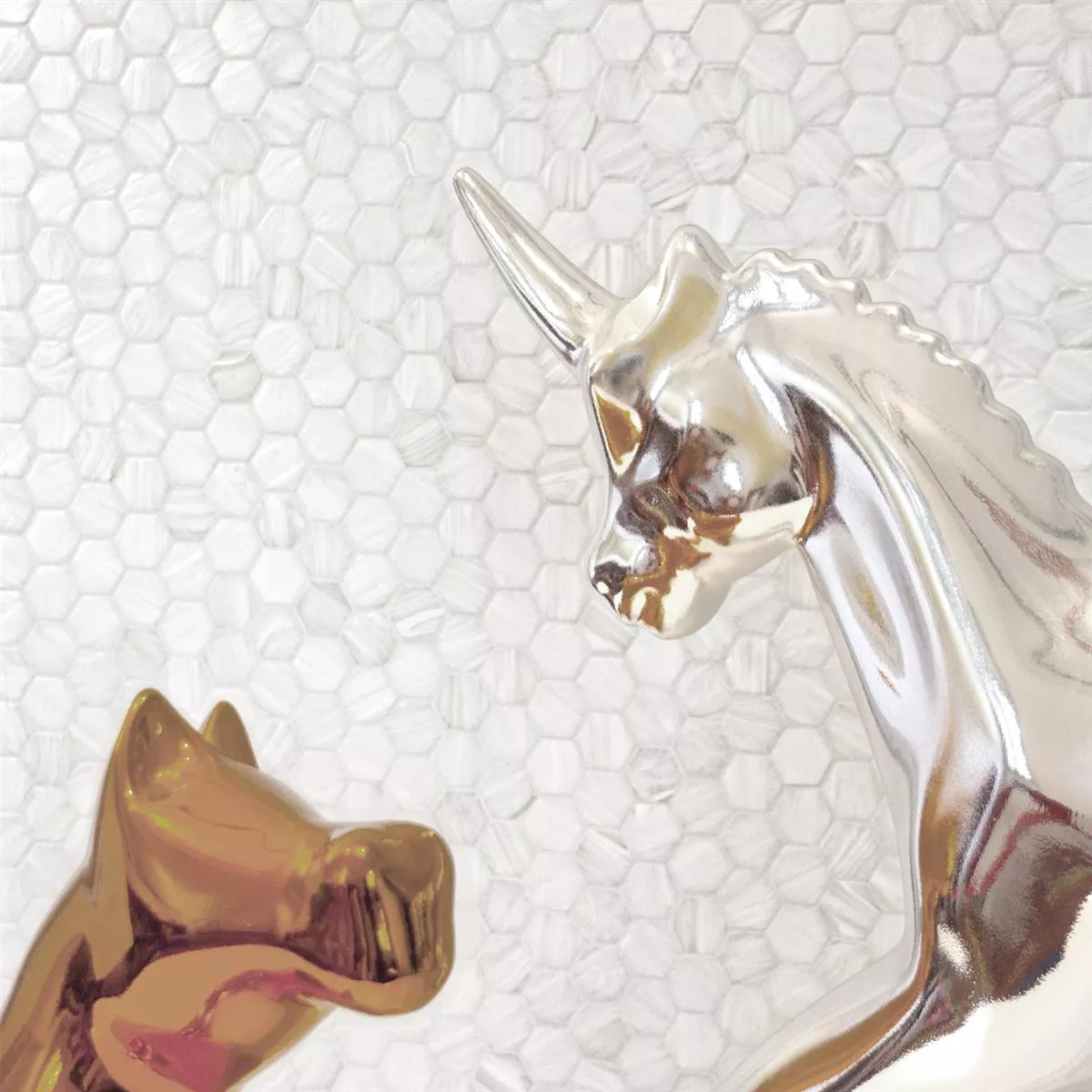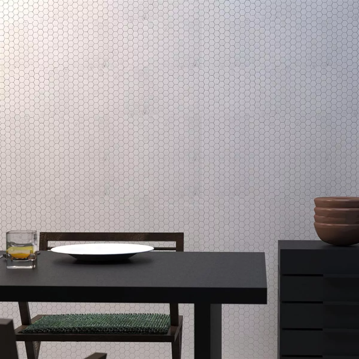 Oppdag våre miljøbevisste glassmosaikkfliser fra Hexagonal-serien, laget av opptil 59 % resirkulert glass. Med sin matte finish gir den et tidløst estetisk preg til ethvert rom i hjemmet – fra bad og kjøkken til vinterhager og stuer.