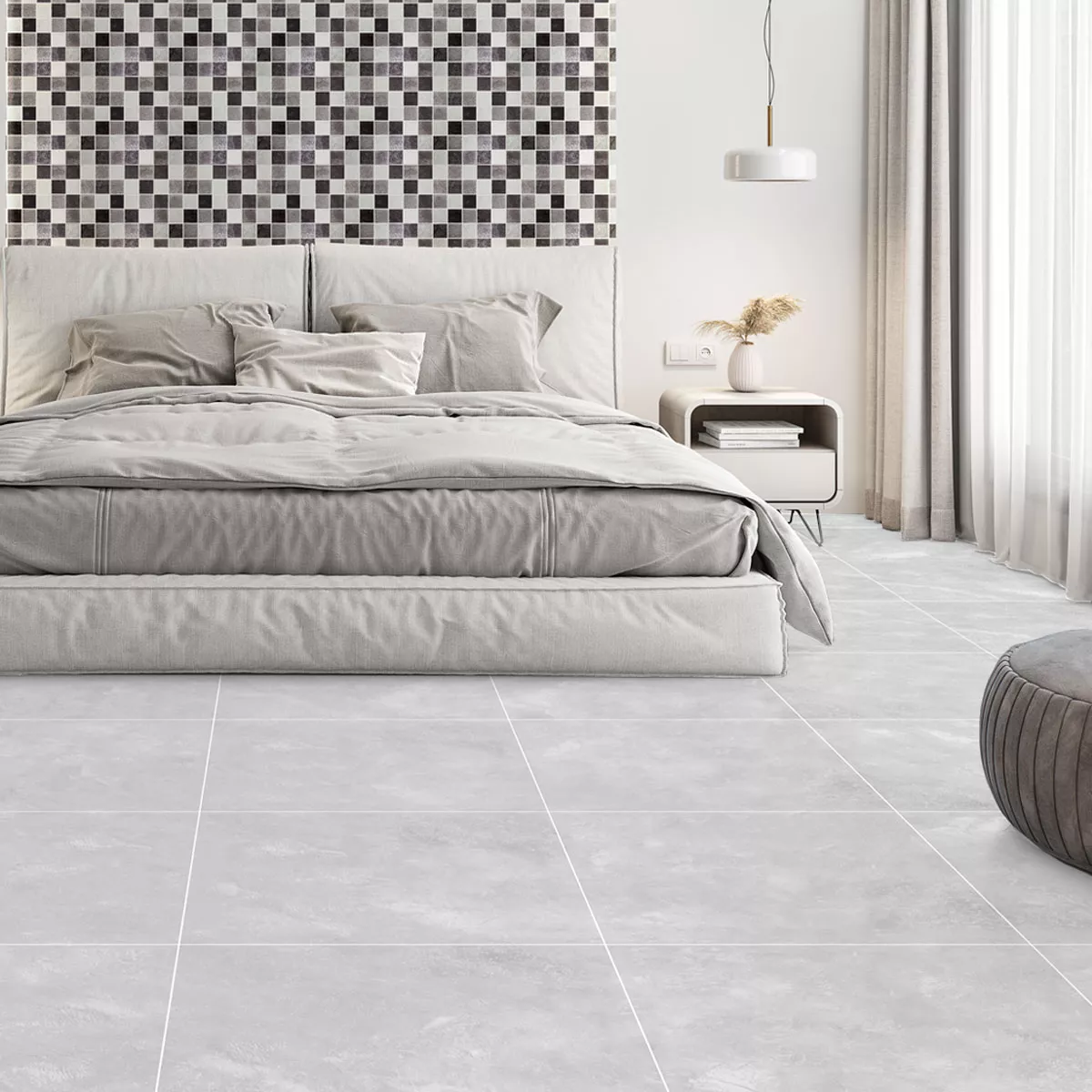Gi hjemmet ditt et moderne preg med våre Cortina gulvfliser i en matt lysegrå look. Disse allsidige flisene i kvadratisk format på 60x60cm gir et stilig betongutseende som passer harmonisk inn i ulike oppholdsrom.