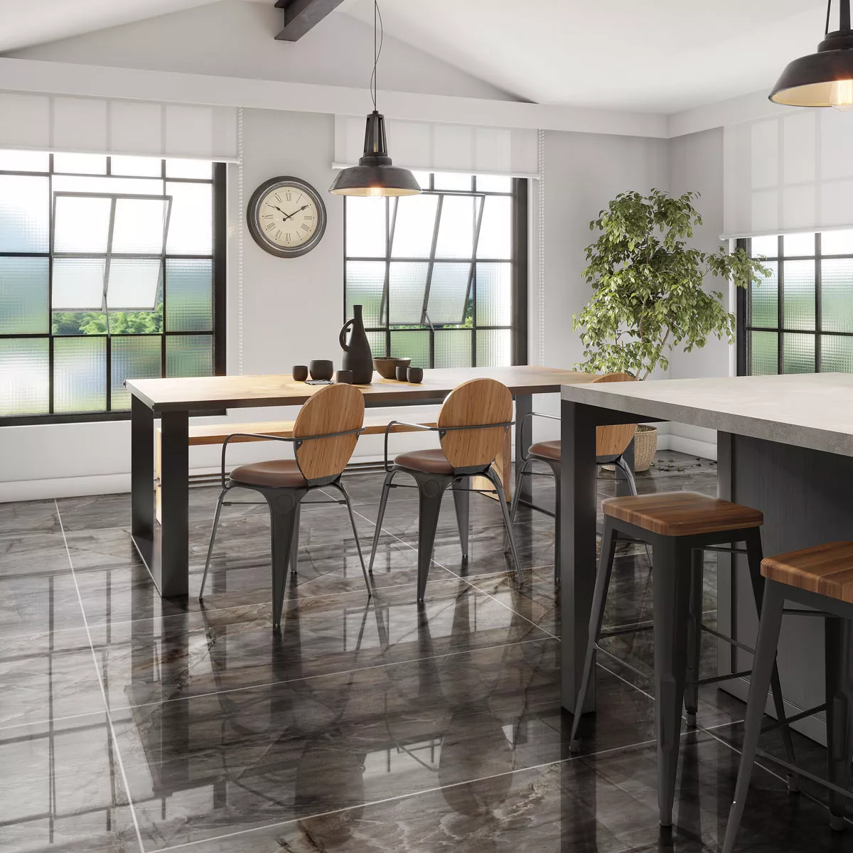 Gulvfliser Trentino Marmor Utseende Polert Glitrende Grå 60x120cm