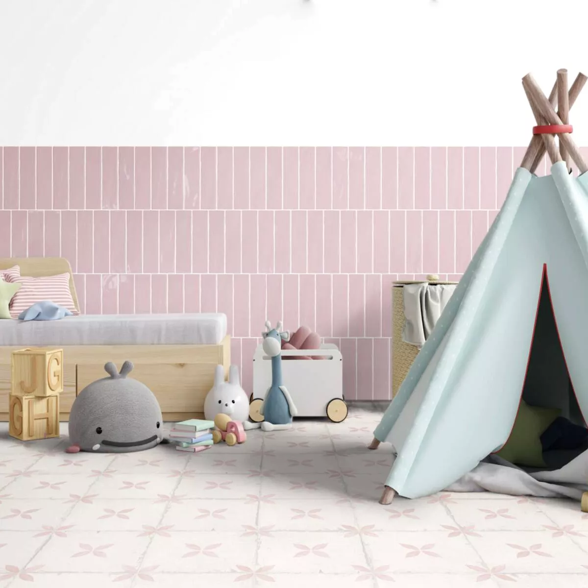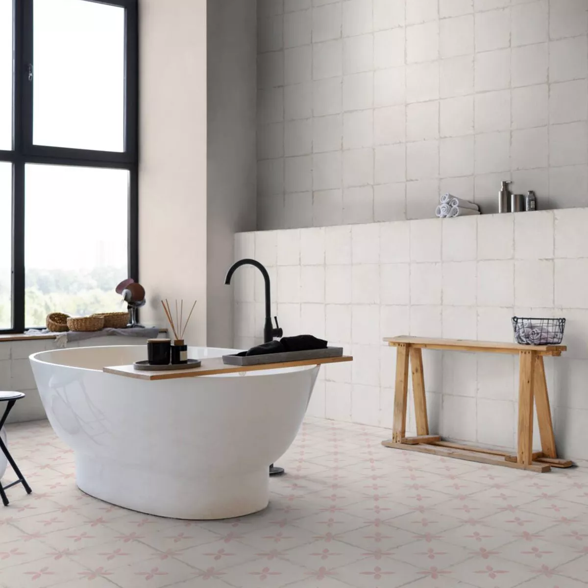 The Pelin floor tile has a matte surface finish that gives the room a special touch. It is available in elegant pink and cream, thus lending any room a warm and harmonious ambiance.